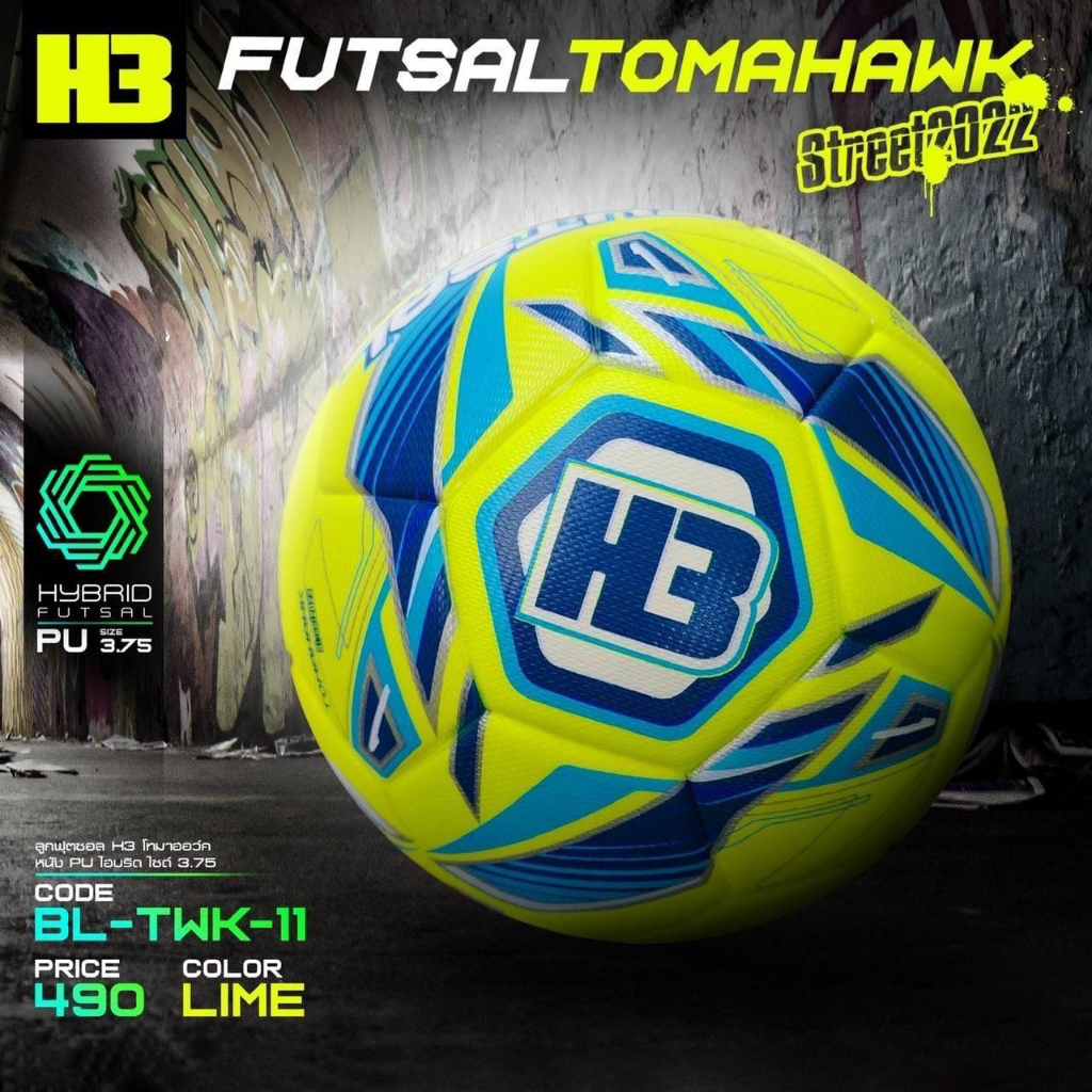ลูกฟุตซอล [H3 Futsal Tomahawk Street 2022] ลูกฟุตซอล หนังPU ไฮบริด ขนาดลูกมาตรฐาน Mini Mall x H3