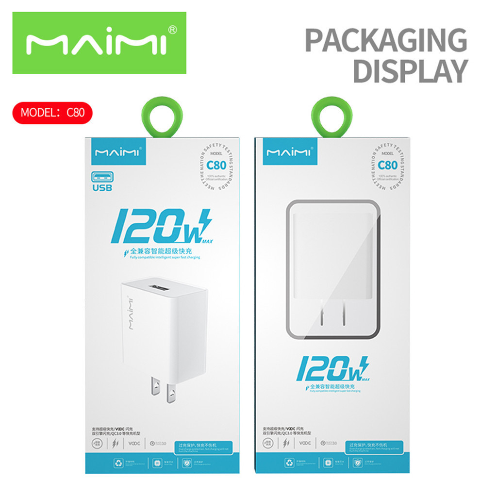 Maimi หัวชาร์จ 120W (รุ่น C80) ชาร์จเร็ว หัวชาร์จUSB 1พอร์ท อะแดปเตอร์ ปลั๊กชาร์จ สินค้ามีการรับประกันคุณภาพ