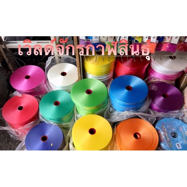 ริบบิ้นพับเหรียญ ตราดอกไม้ ม้วนละ 350 หลา เนื้อมันทรายไม่แตก มี 10 สีให้เลือก