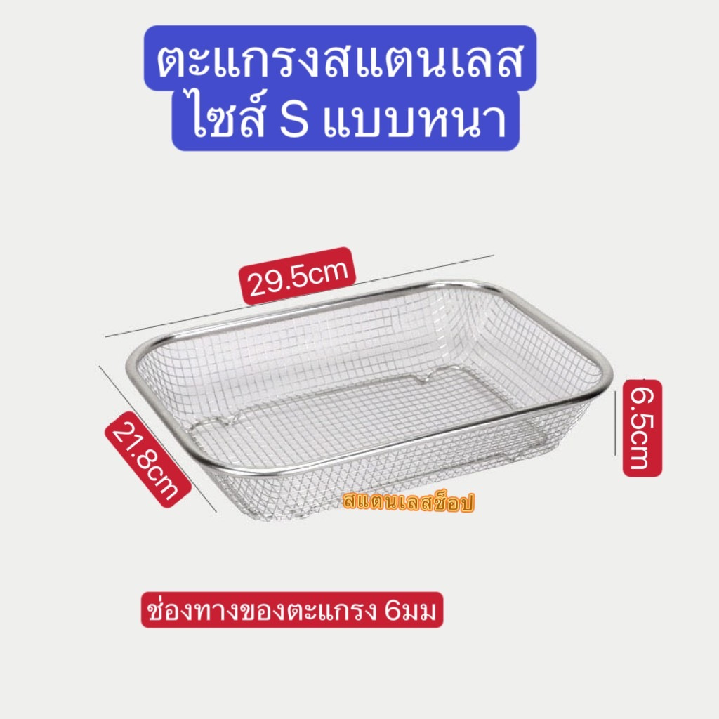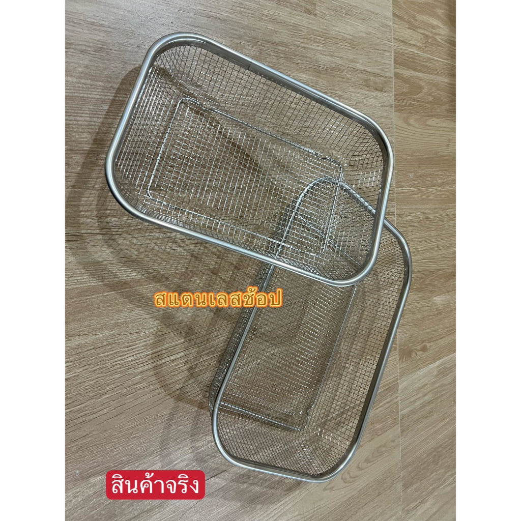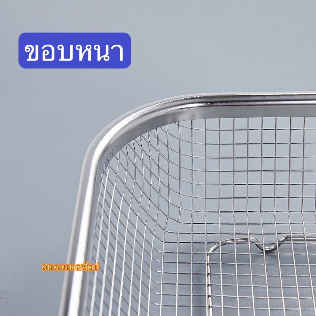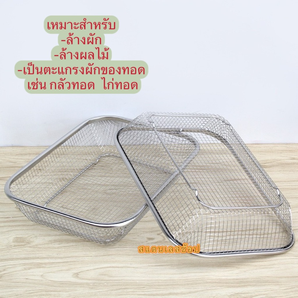 ตะแกรงแตนเลส สี่เหลี่ยม ตะกร้าพักของทอด ตะแกรงล้างผัก+ผลไม้ TG-P01