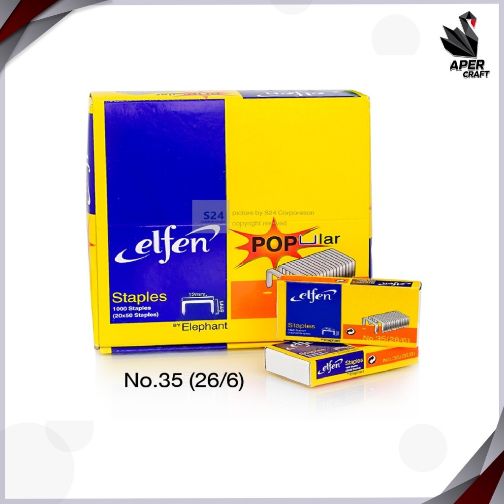 ELFEN ลวดเย็บ เบอร์ 10 และ 35 เย็บกระดาษ ลูกแม็ก รุ่น Popular elfen ของแท้ ( 1 กล่องใหญ่ มี 24 กล่องเล็ก )
