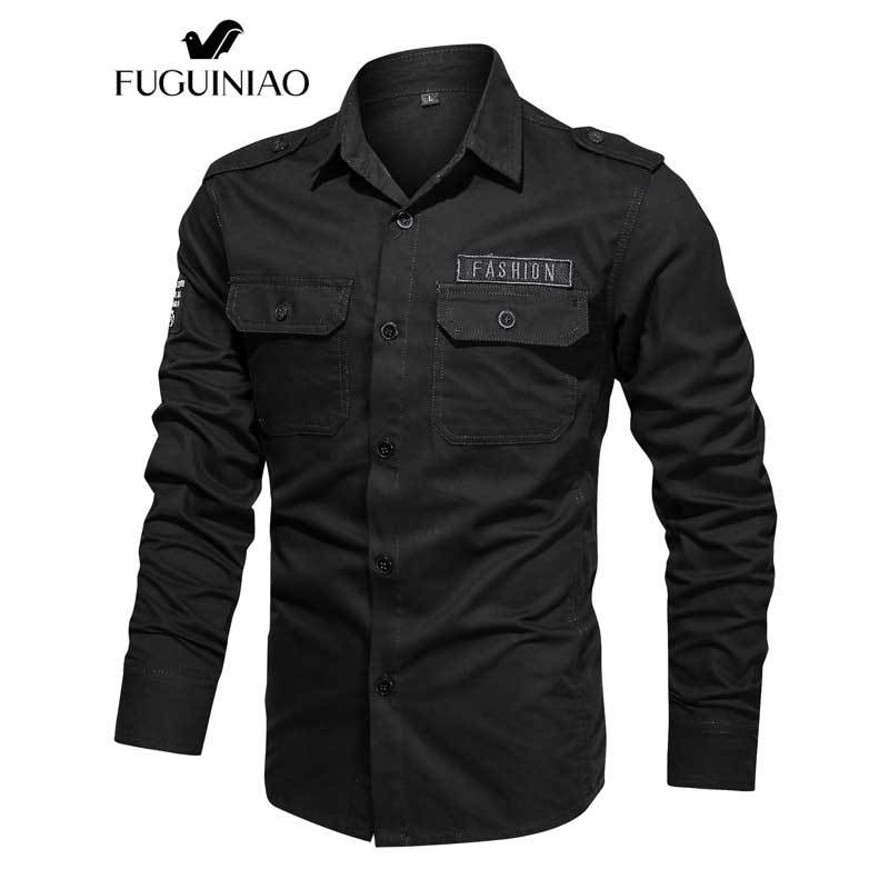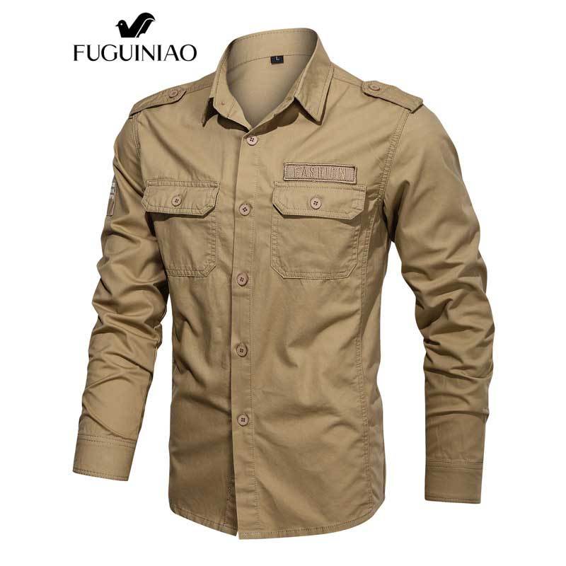 Fuguiniao เสื้อเชิ้ตแขนยาวลําลอง เข้ารูป มีหลายกระเป๋า สไตล์ยุโรป และอเมริกา เหมาะกับฤดูใบไม้ผลิ และฤดูร้อน สําหรับผู้ชาย ไซซ์ 6XL