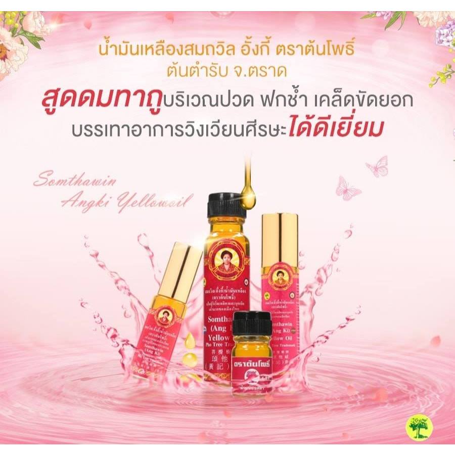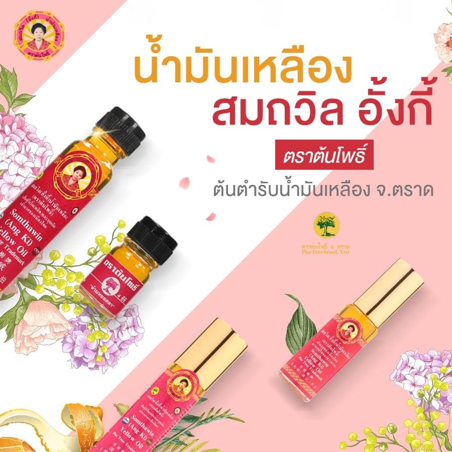 น้ำมันเหลือง สมถวิล อั้งกี้ ตราต้นโพธิ์ [1 ขวด] สูด ดม ทา ถู บริเวณปวด ฟกช้ำ บรรเทาอาการวิงเวียน [มี 3 ขนาด]