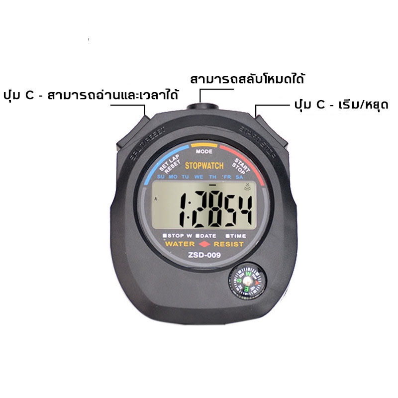 ⏱️นาฬิกาจับเวลา⏱️นาฬิกาจับเวลาแบบดิจิตอล แบบพกพา เข็มทิศ บันทึกเวลา นาฬิกาปลุก Digital Stop Watch