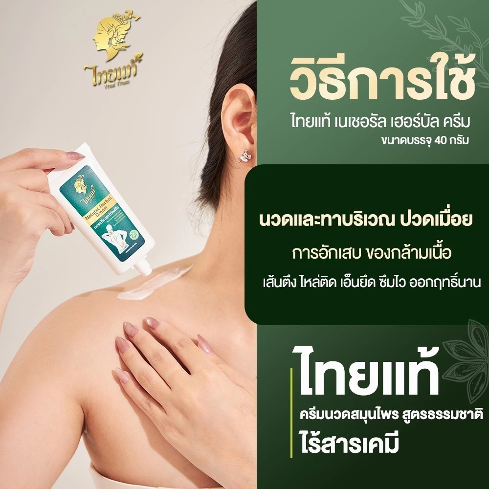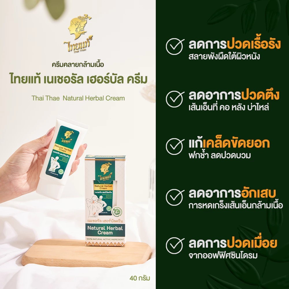 ครีมทาแก้ปวด ออฟฟิศซินโดรม ปวดกล้ามเนื้อ คอ บ่า ไหล่ ปวดหลัง ไทยแท้ เนเชอรัล เฮอร์บัล ครีม 40g