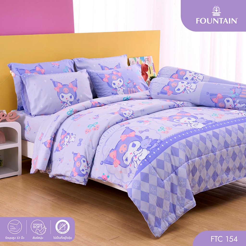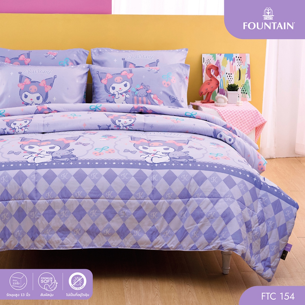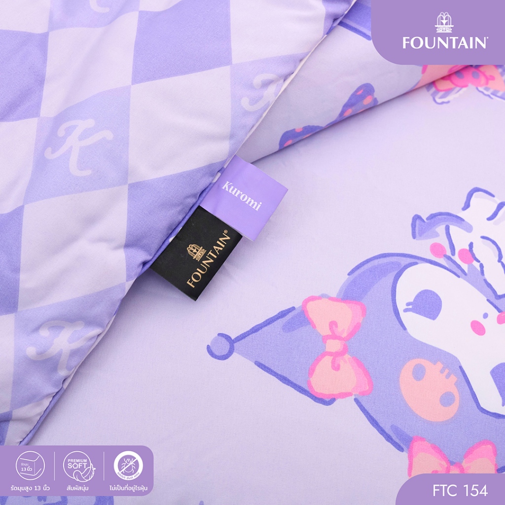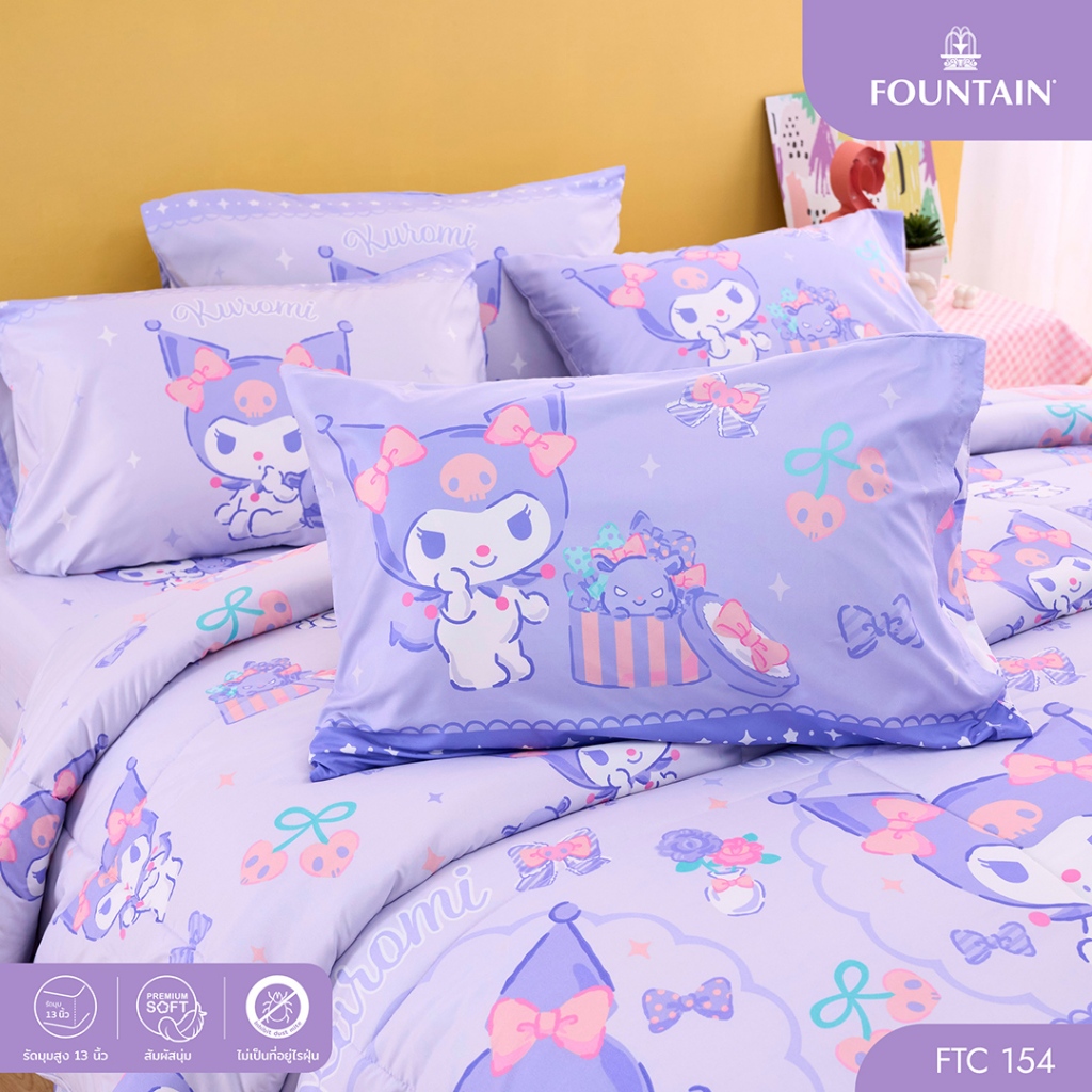 Fountain FTC154 การ์ตูน Kuromi ลิขสิทธิ์แท้ Sanrio สัมผัสนุ่มลื่น ชุดเครื่องนอนฟาวน์เทน ผ้าปูที่นอน ผ้านวม