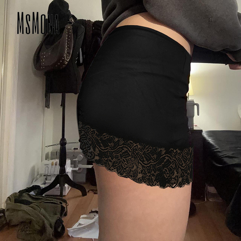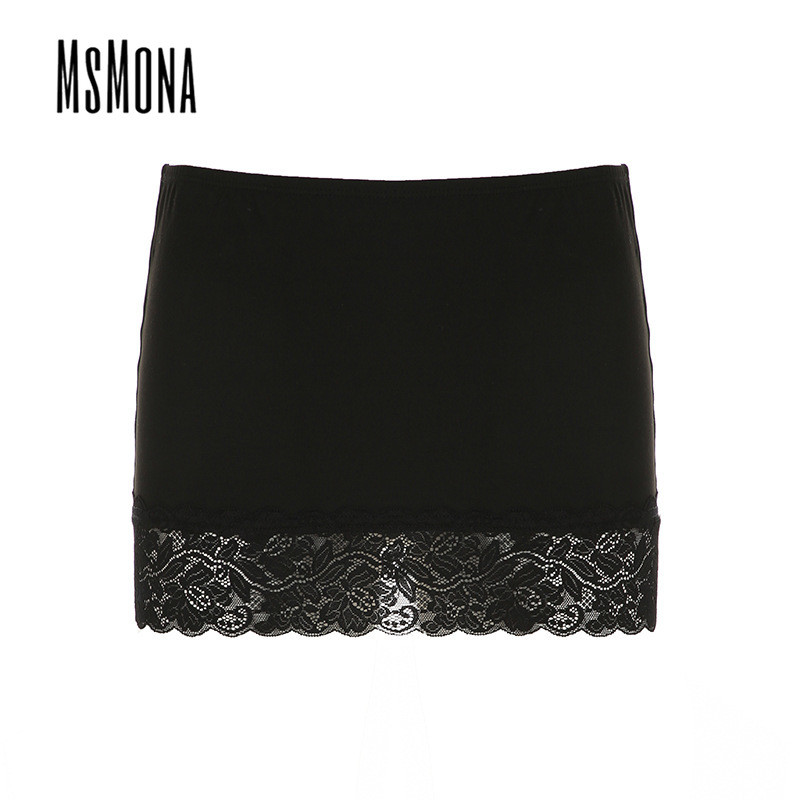 Msmona ผู้หญิงกระโปรง 2025 ฤดูร้อนใหม่เซ็กซี่ลูกไม้มุมมอง Scheming Hip Wrap กระโปรงสั้น Street Hipster สีทึบ