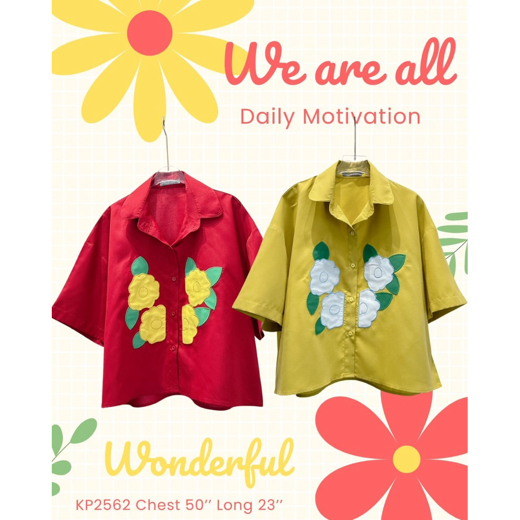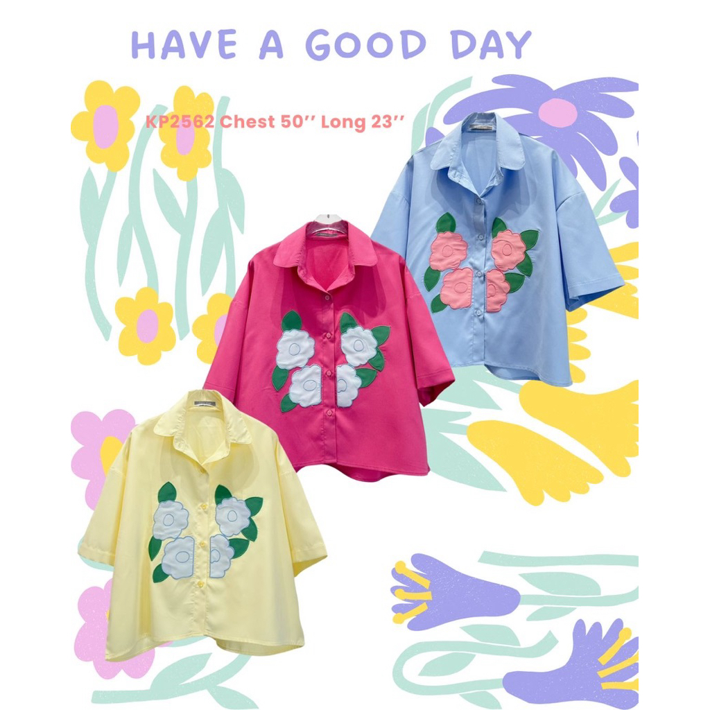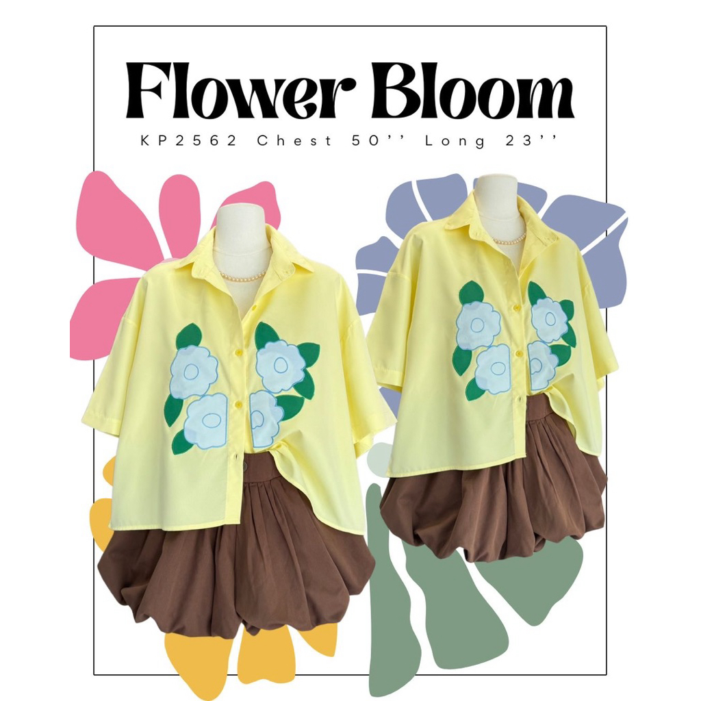 💐🌺flower🌺💐เสื้อเชิ้ตแขนสั้นปักดอกไม้2ข้าง💐ทรงใหญ่ ทรง over sizeใส่แมทช์ได้ทุกลุคทุกสไตล์💐2562