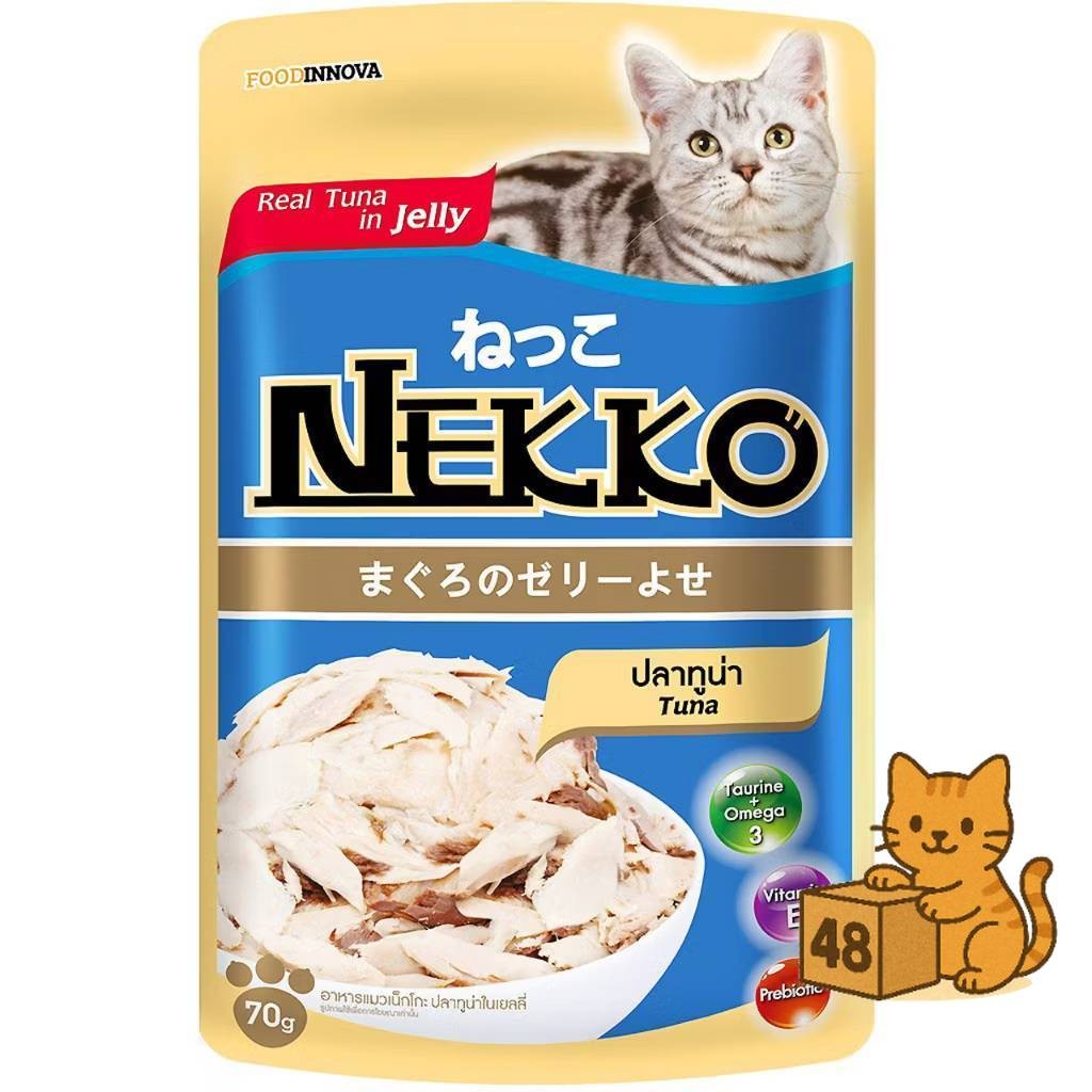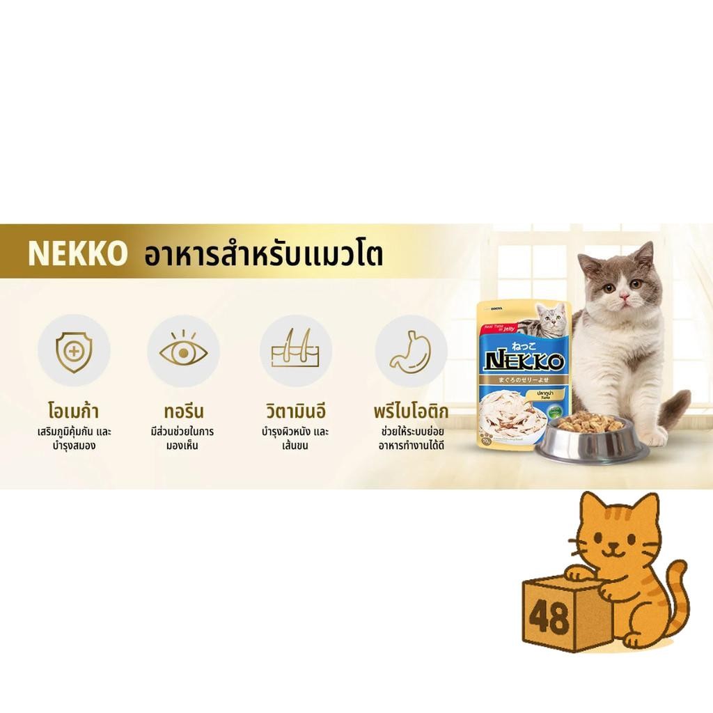 ( ยกลัง 48 ซอง ) Nekko อาหารแมว เปียกแมว เนื้อทูน่าแท้ โดยไม่มีส่วนผสมของเนื้อเทียมและไม่มีสารกันบูด