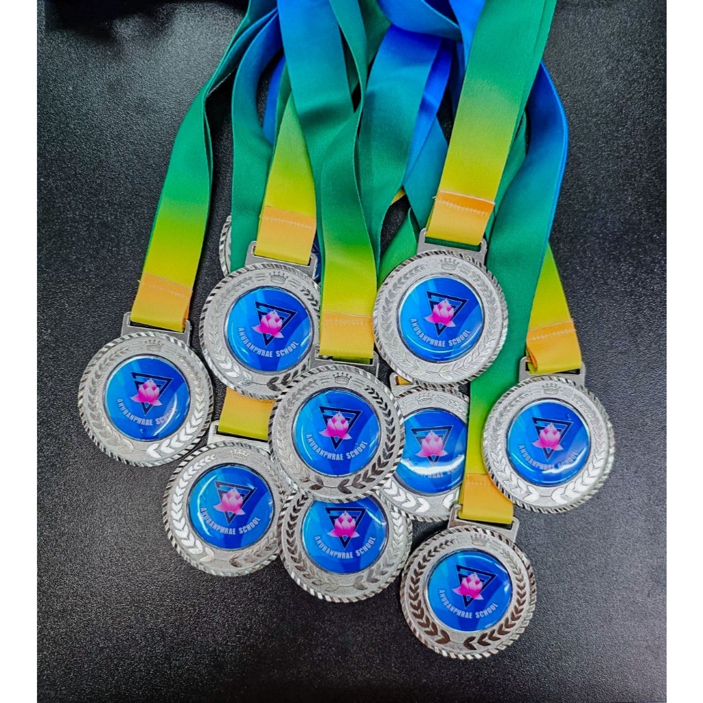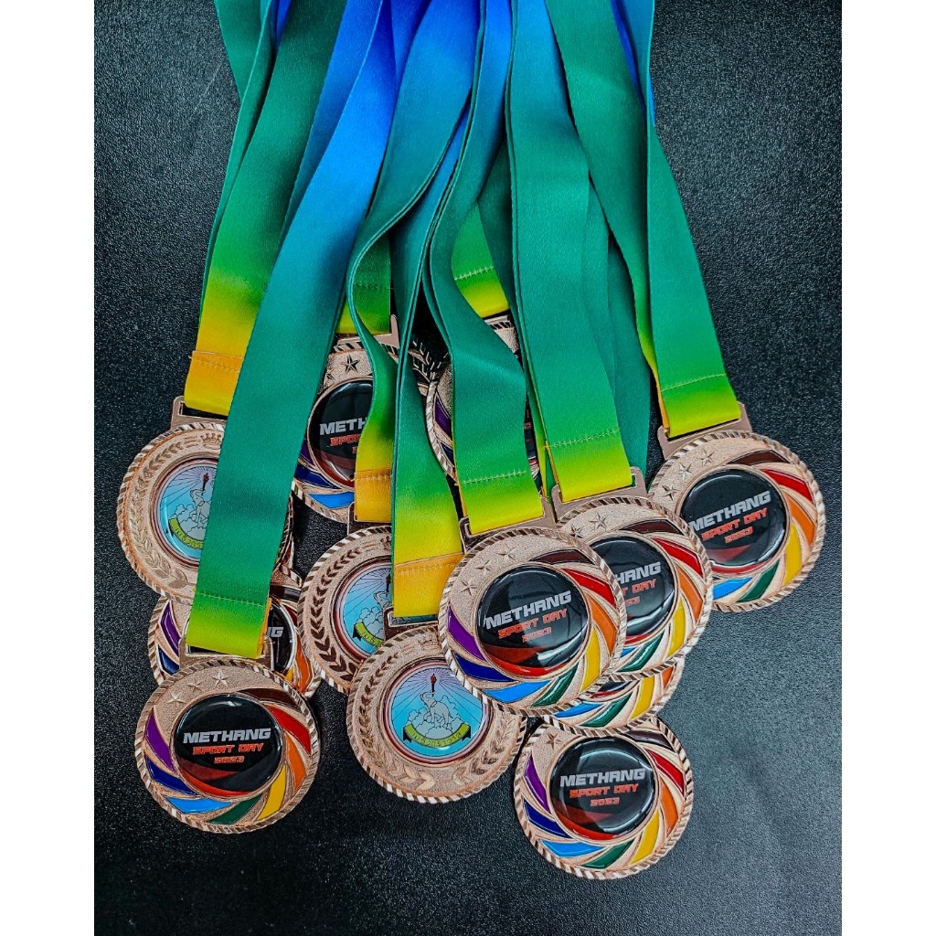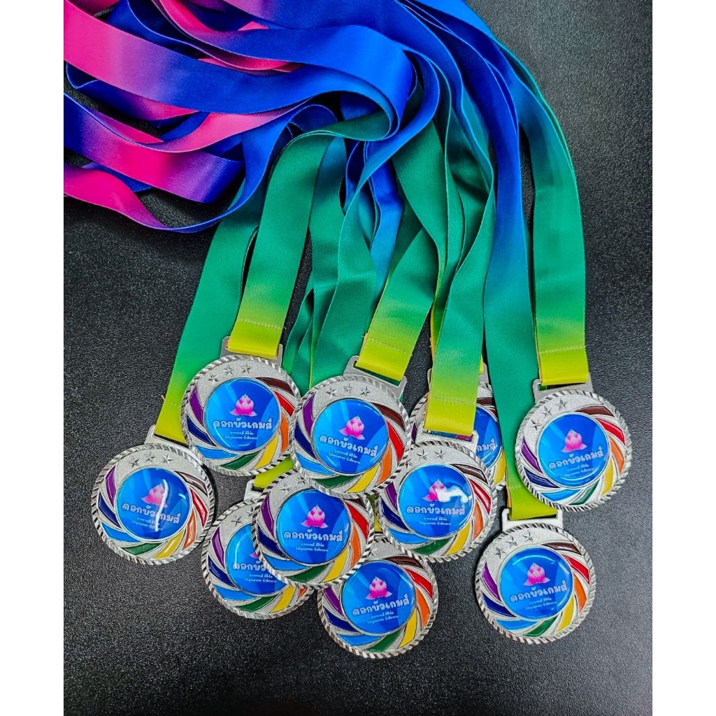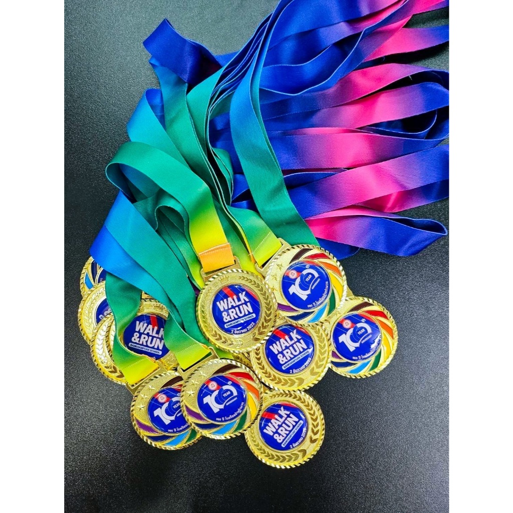 เหรียญรางวัลโลหะ เหรียญงานวิ่งทิพย์ เหรียญกีฬา พร้อมสติกเกอร์กันน้ำหน้า/หลัง และริบบิ้นผ้า พร้อมส่ง แจ้งโลโก้ในแชทได้เลย