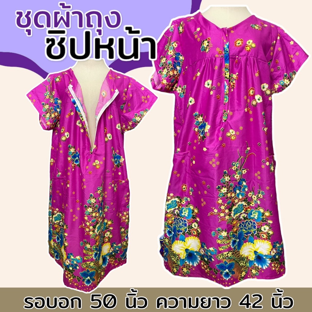 ชุดผ้าถุง ซิปหน้า ใส่ได้ตั้งแต่อก 32-46 นิว สีไม่ตก ผ้านิ่มใส่สบาย ไม่ร้อน (B02)