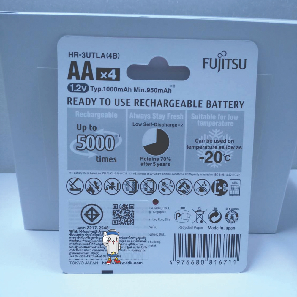 ถ่านชาร์จ Fujitsu AA 1000mAh แพ็ค 4ก้อน