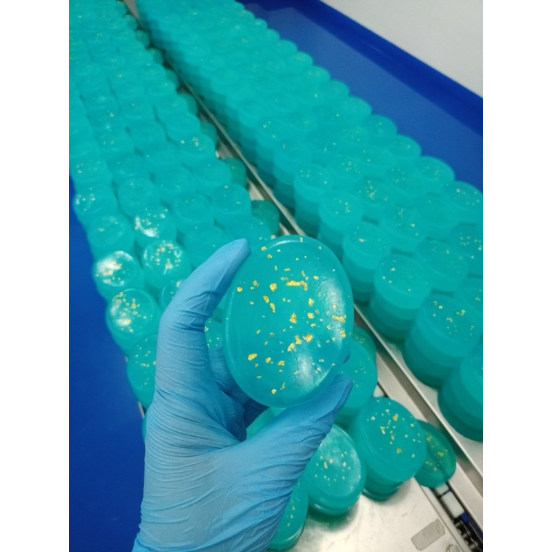 สบู่น้ำแร่ทองคำก้อนสีฟ้า CH 1ก้อน