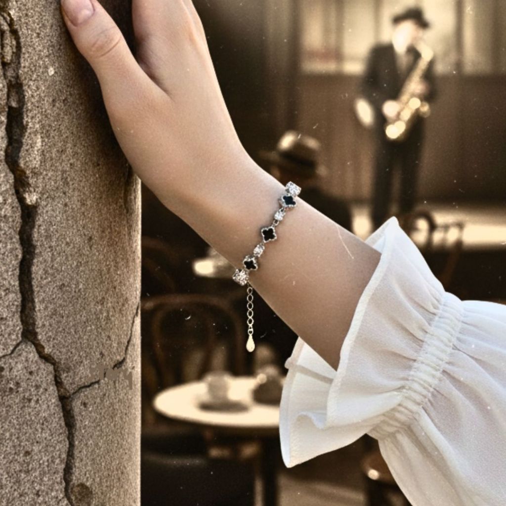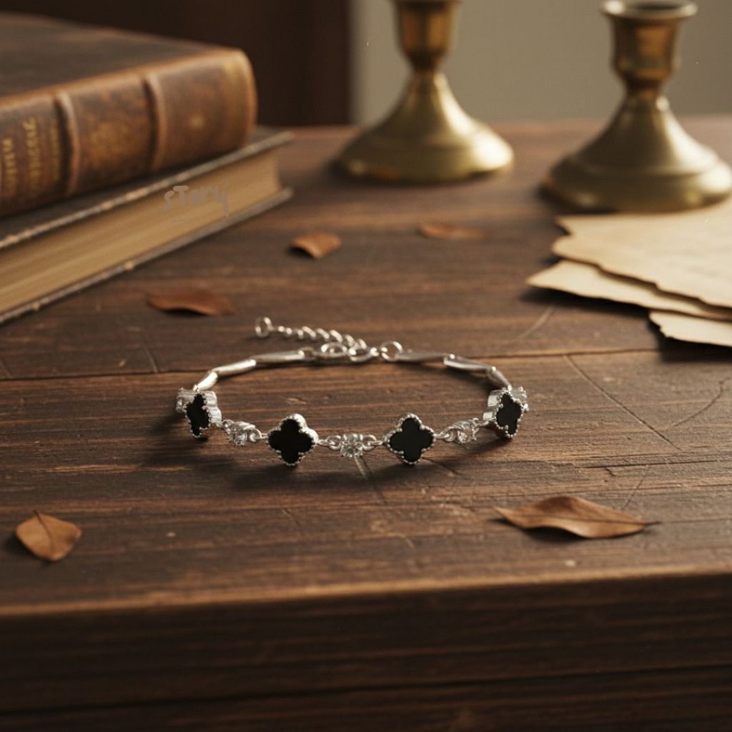STORY กําไลเงินแท้ Black Leafs สร้อยข้อมือเพชร สร้อยข้อมือเงินแท้ โคลเวอร์สี่ใบ กำไลแฟชั่น วาเลนไทน์