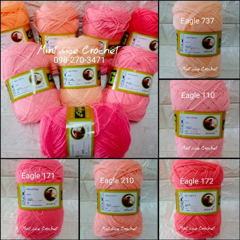 ไหมพรมอีเกิ้ล{โทนส้มโอรส ชมพู}ม้วนใหญ่80กรัม