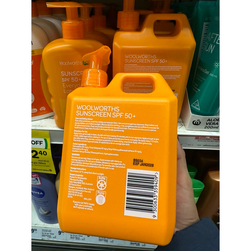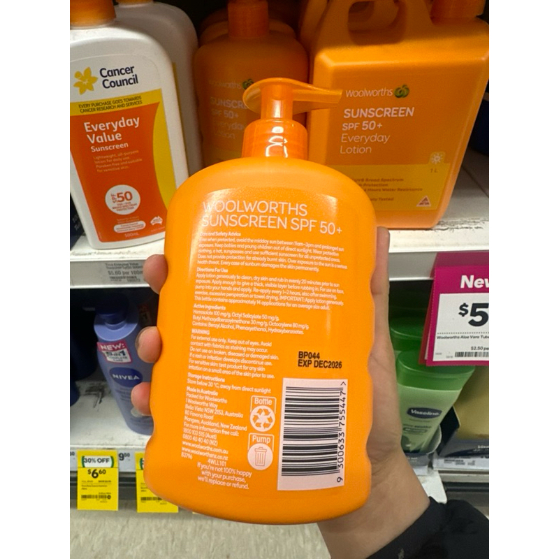 พร้อมส่งหลังสงกรานต์🇦🇺☀️EXP2028ของแท้แนบใบเสร็จออกช็อป💯Woolworths Sunscreen Spf 50+ 1L 🇦🇺กันแดดยอดฮิตจากออสเตรเลีย