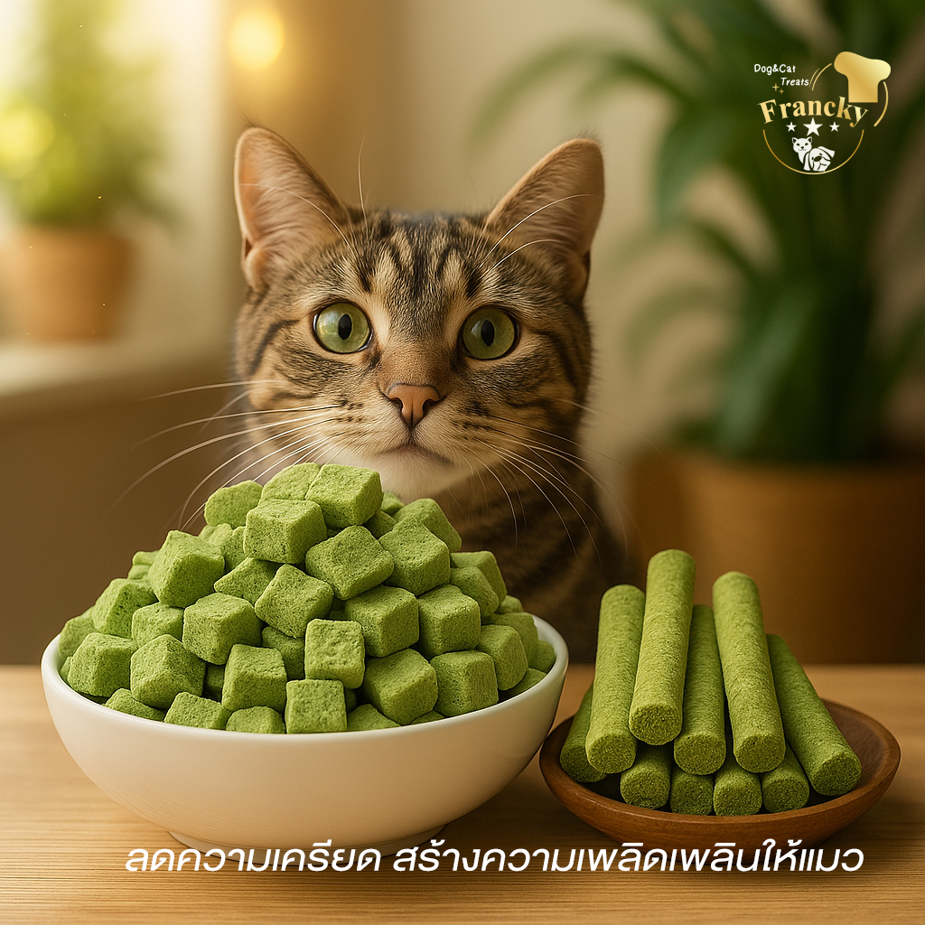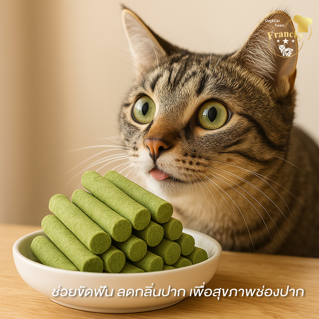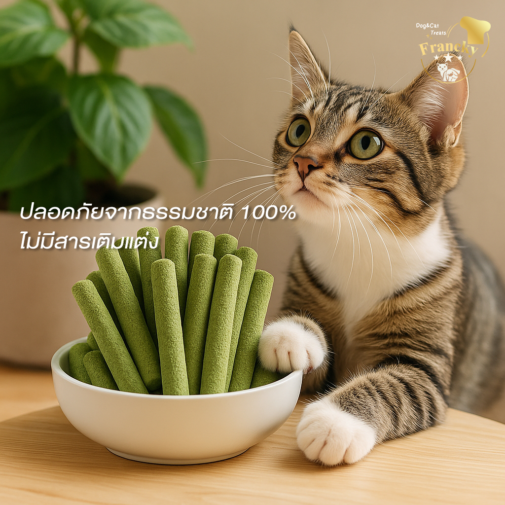 Francky หญ้าแมวผสมอกไก่ 50g. (สูตรลดก้อนขน) ขนมแมวทานเล่นที่มีประโยชน์ ไฟเบอร์ธรรมชาติสูง ย่อยง่าย