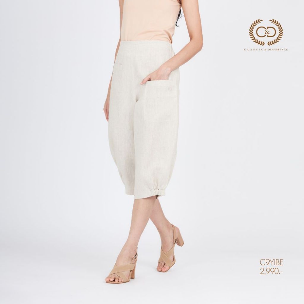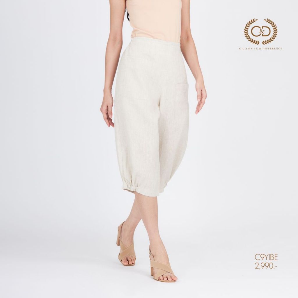 C&D กางเกงผู้หญิง Linen Premium Big jinny pants ขาห้าส่วน สีเบจ C9YIBE
