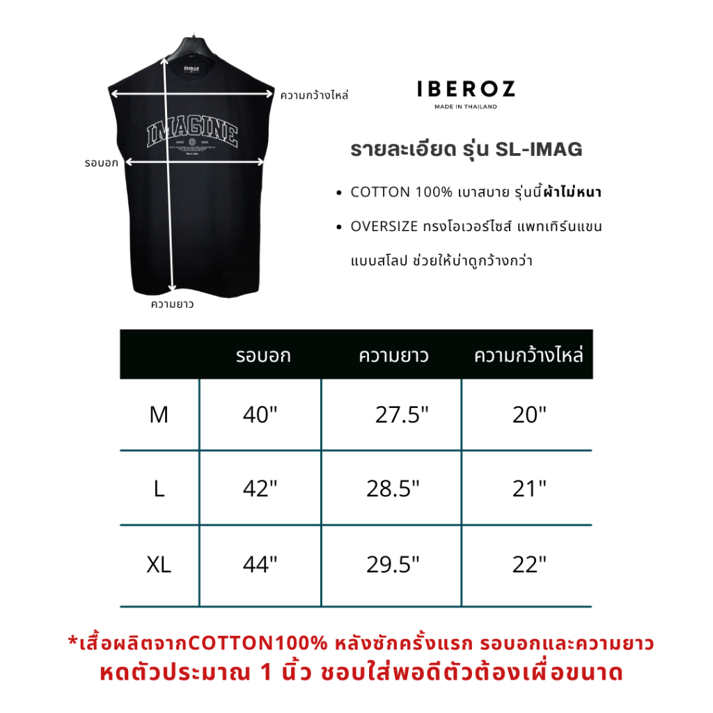 IBEROZ เสื้อแขนกุด โอเวอร์ไซส์ สกรีนลาย ติดโลโก้ซิลิโคน รุ่น SL-IMAG