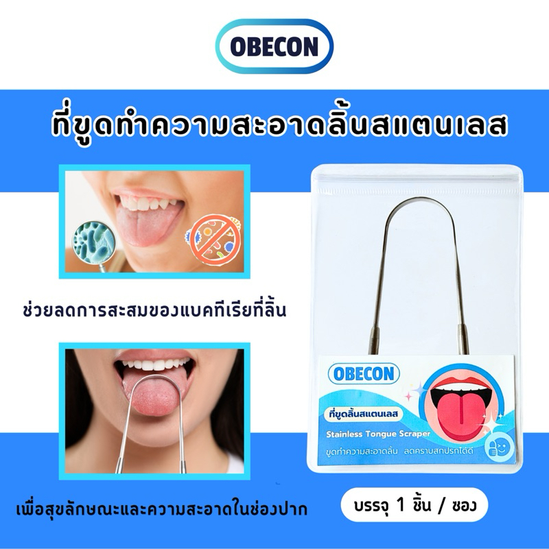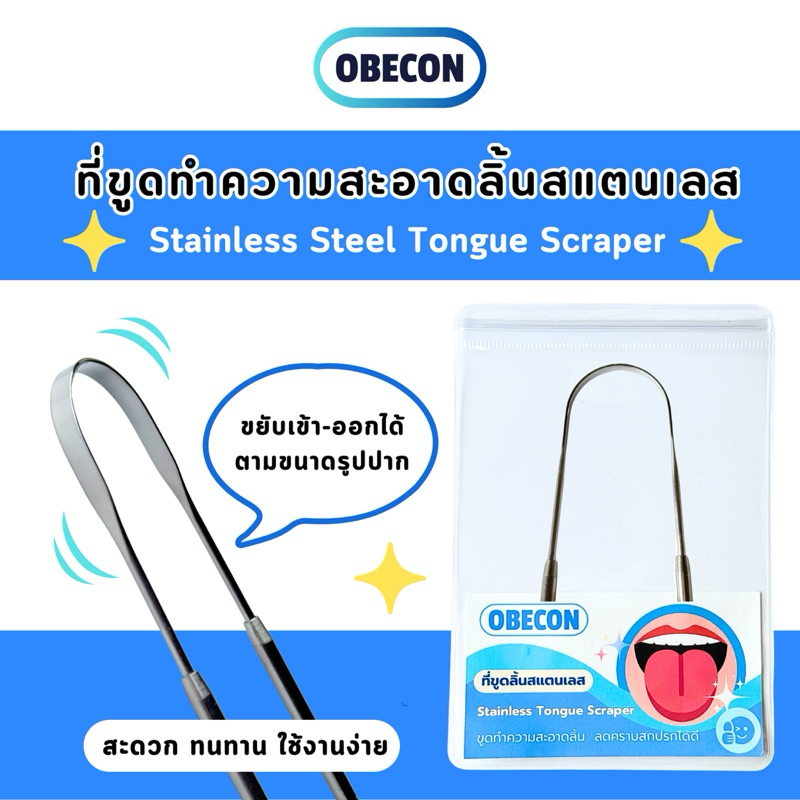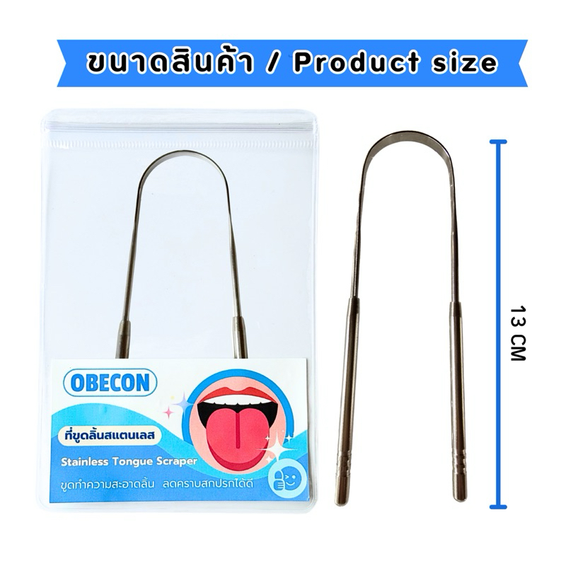 OBECON ที่ขูดลิ้นสแตนเลส Tongue scraper ทรง U-Shape แปรงทำความสะอาดลิ้น ลดกลิ่นปาก