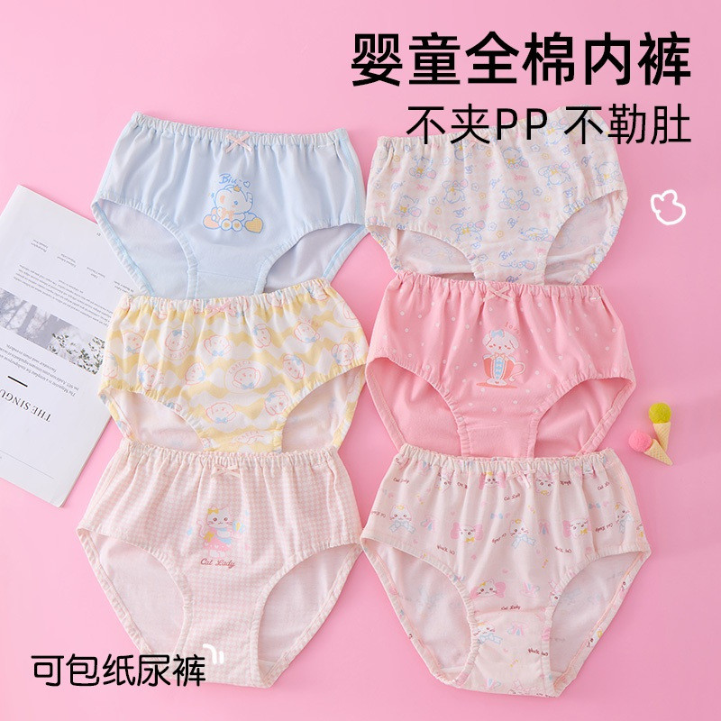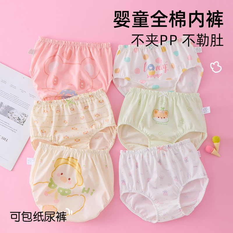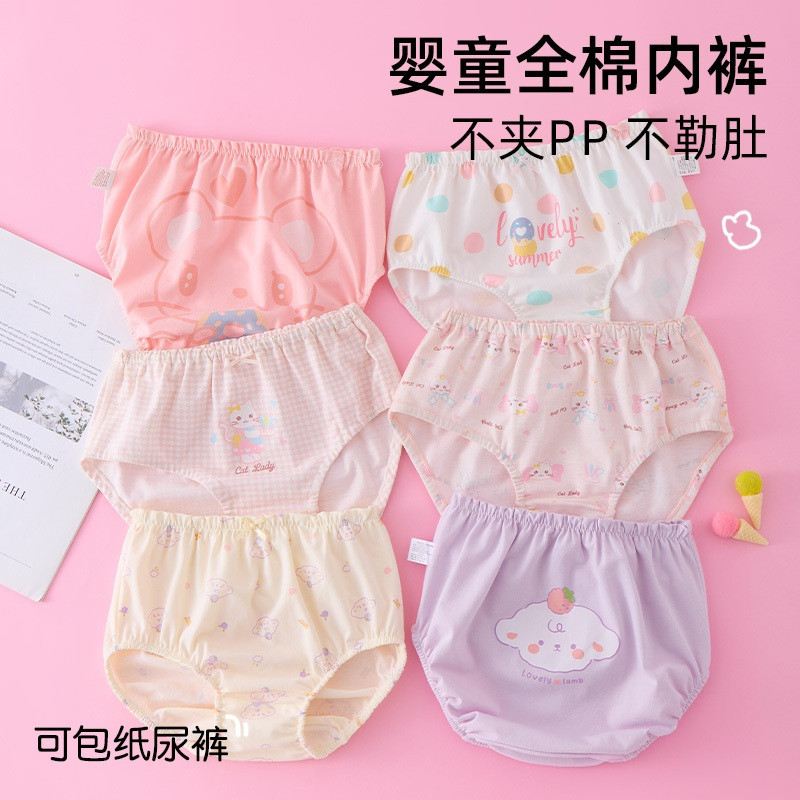สาวชุดชั้นในผ้าฝ้ายแท้ระบายอากาศการ์ตูนต้านเชื้อแบคทีเรียกางเกงบ็อกเซอร์เด็ก