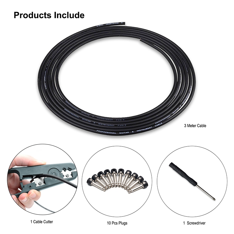 Diy กีตาร์เหยียบ Patch Cable Solder-ฟรีเหยียบทองแดงสายชุด 10ft 10 สีดําหมวกเสียง Solderless 6.35 Mono ปลั๊กสําหรับเอฟเฟกต์เหยียบเครื่องดนตรีใหม่