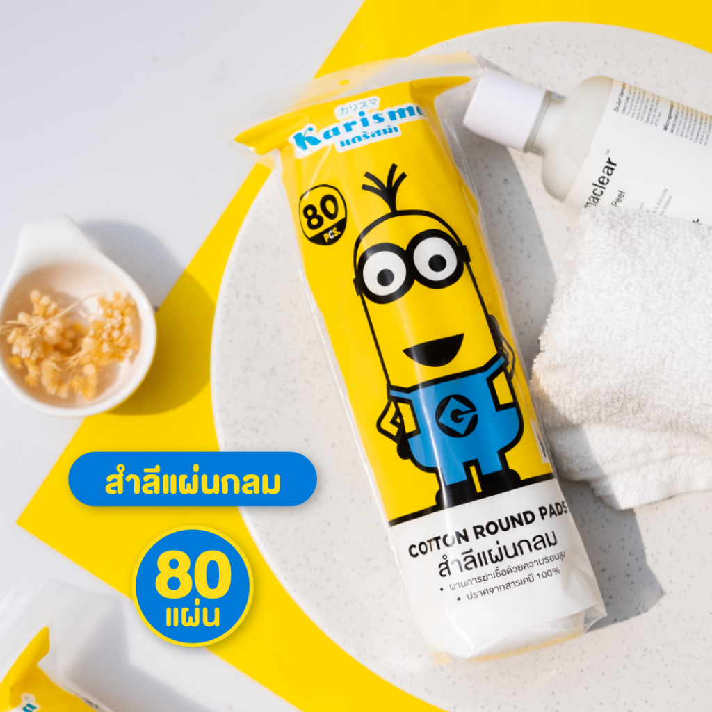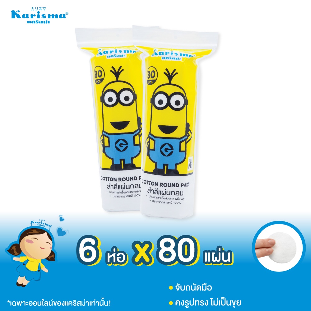 Promotion สุดพิเศษ Karisma แคริสม่า สำลีแผ่นกลม มินเนี่ยน 80 แผ่น x 6 ห่อ