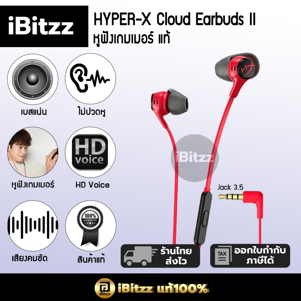 HyperX cloud II earbuds แท้100% [SKU119] หูฟังเกมมิ่ง 3.5mm หูฟังสำหรับเล่นเกม Earbud Earbuds หูฟังGaming