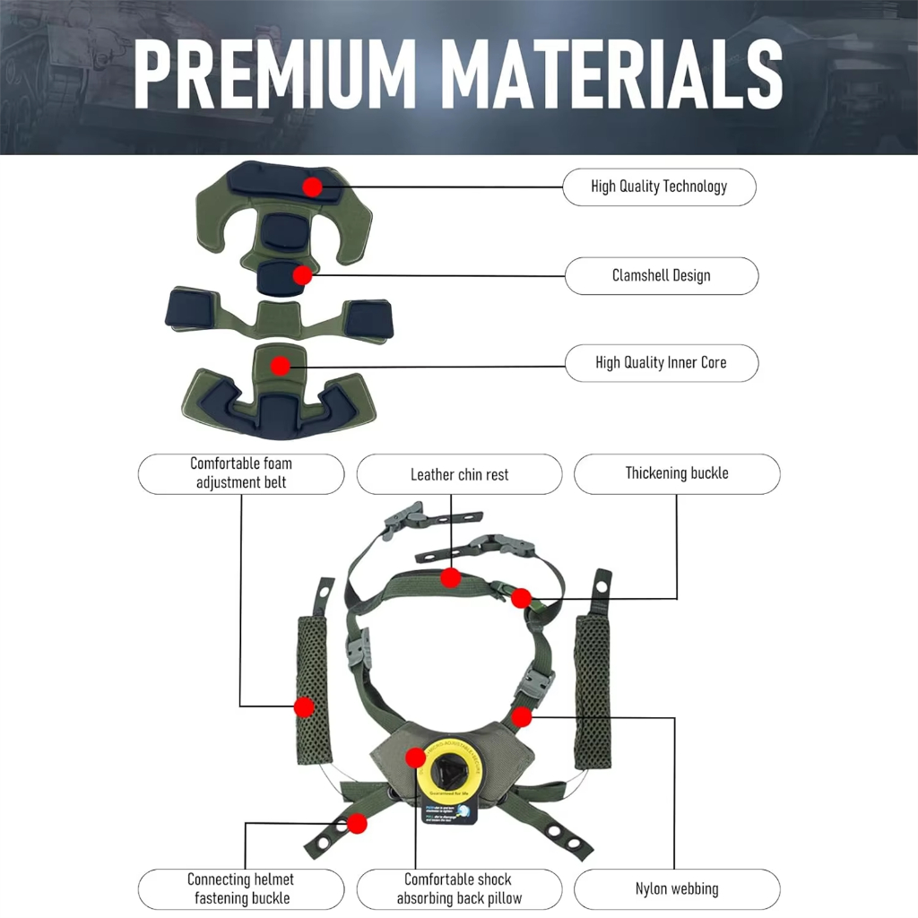 หมวกทหาร สายรัดคางหมวก หมวกยุทธวิธี สายรัดคาง ทหาร แผ่นฟองน้ำ รองในหมวก แผ่นกาวตีนตุ๊กเเก ซับ ใน หมวกกันน็อค Mich2000 FAST Wendy