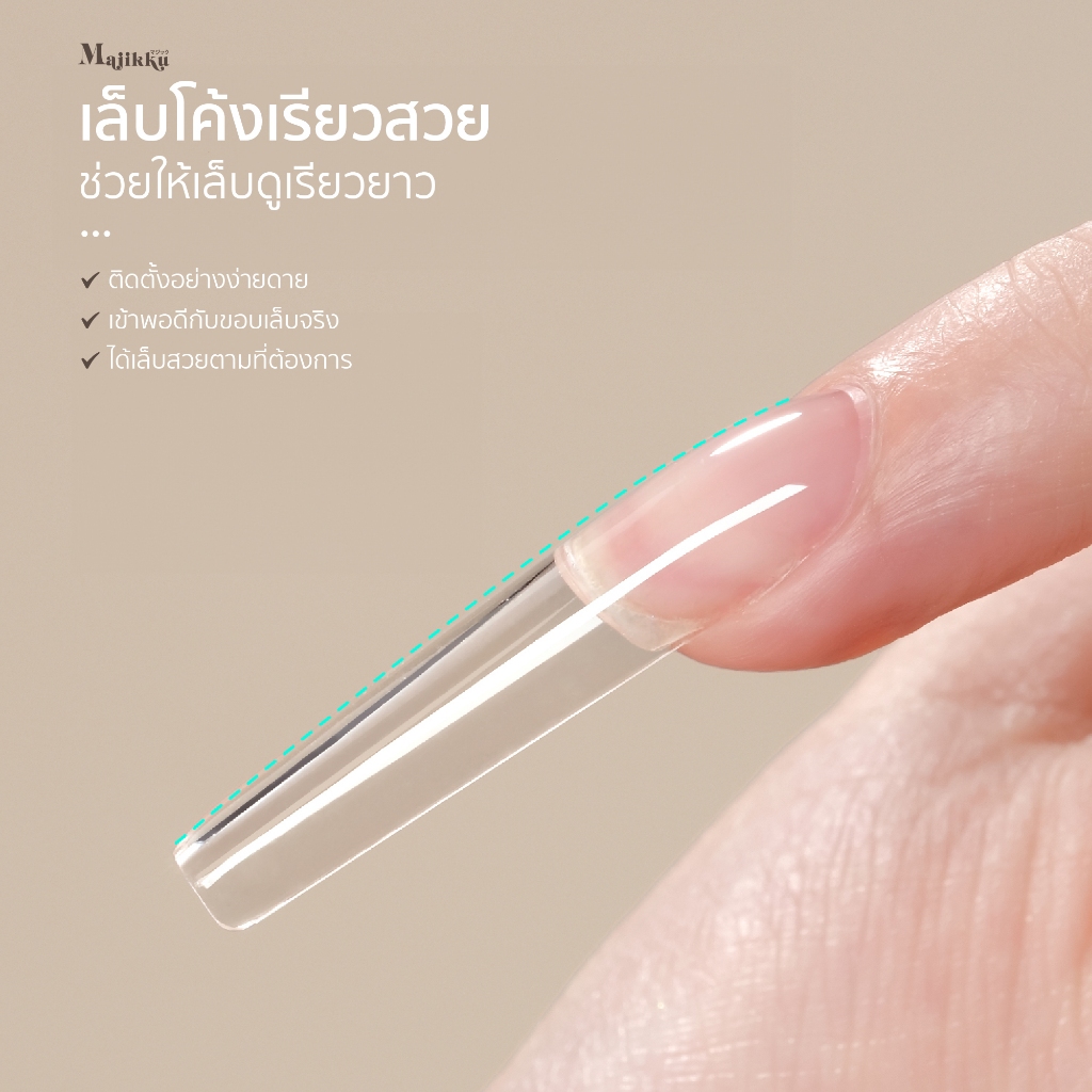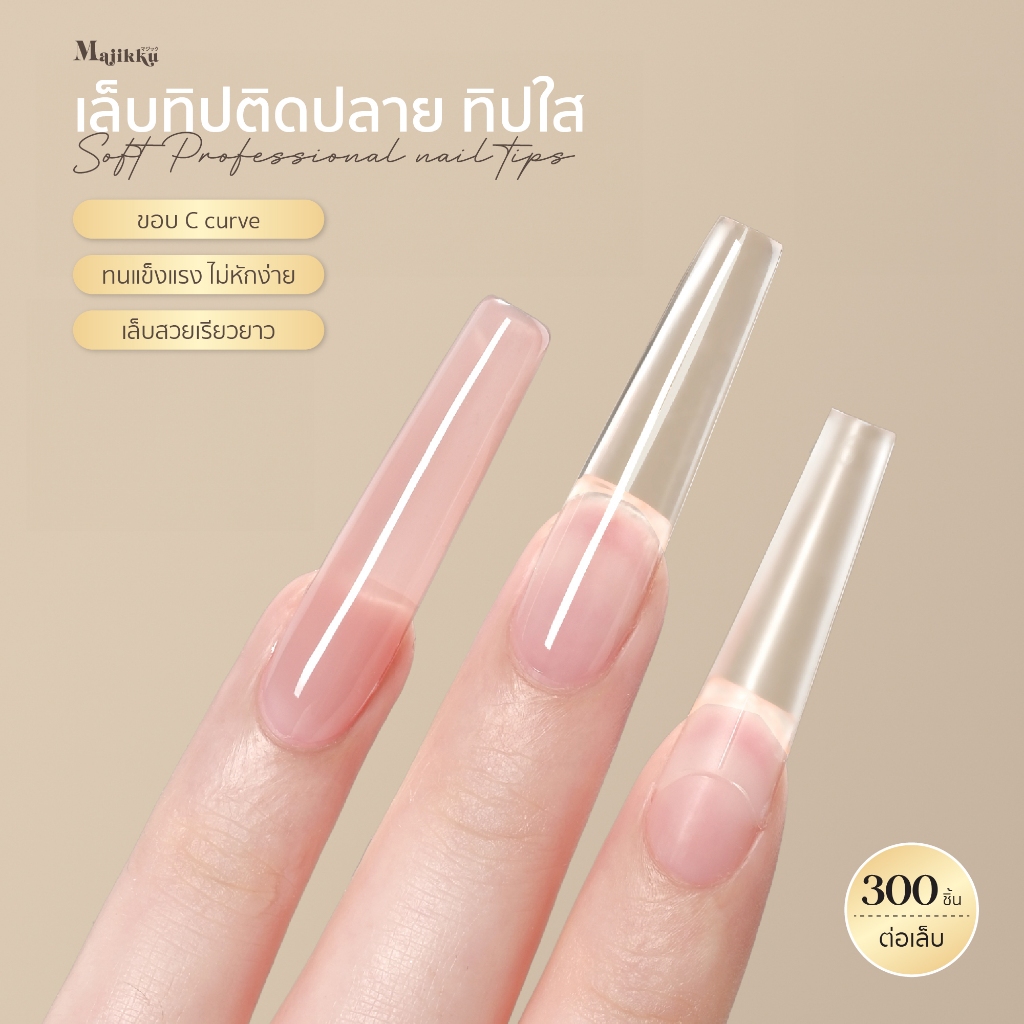MAJIKKU Soft Tip PVC เล็บปลอมติดเล็บ แบบครึ่งเล็บ 300ชิ้น/กล่อง หยืดยุ่น เบา ไม่แตกหักง่าย สบายเล็บ
