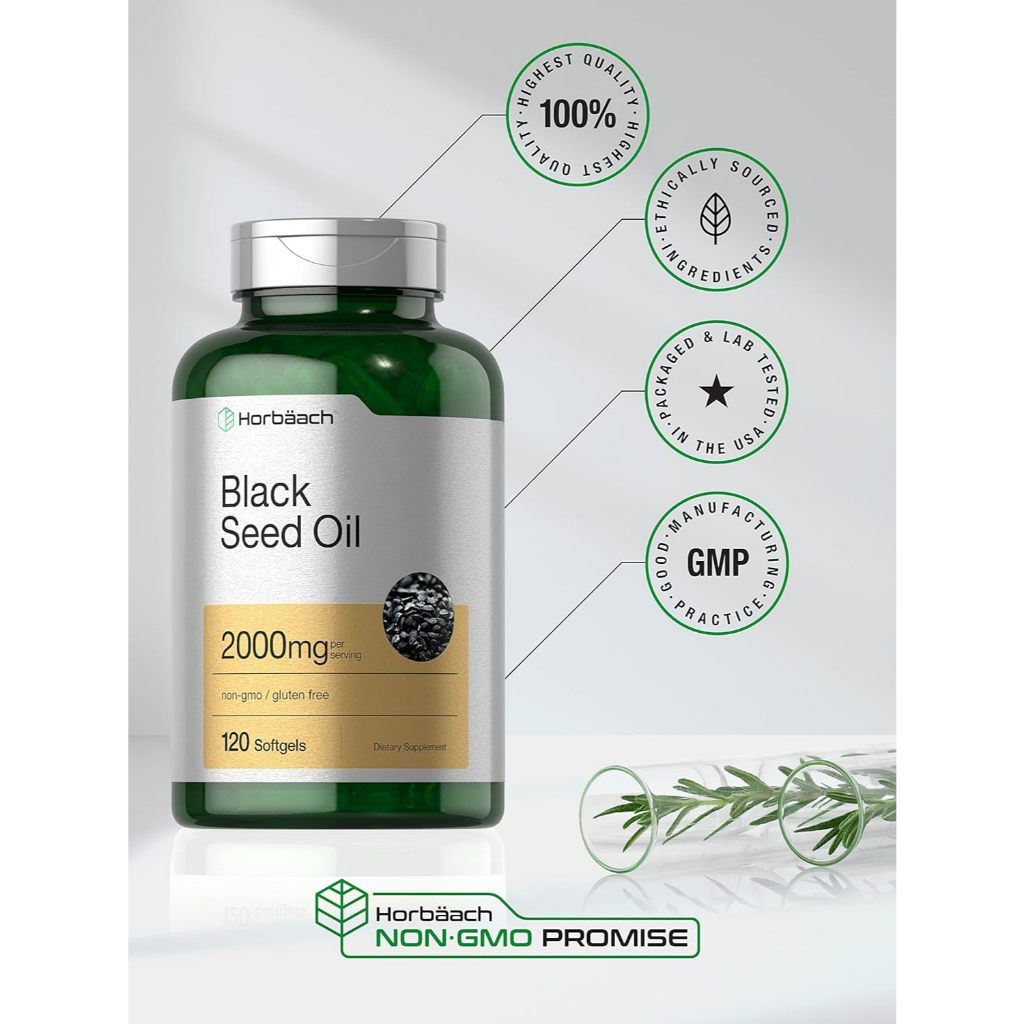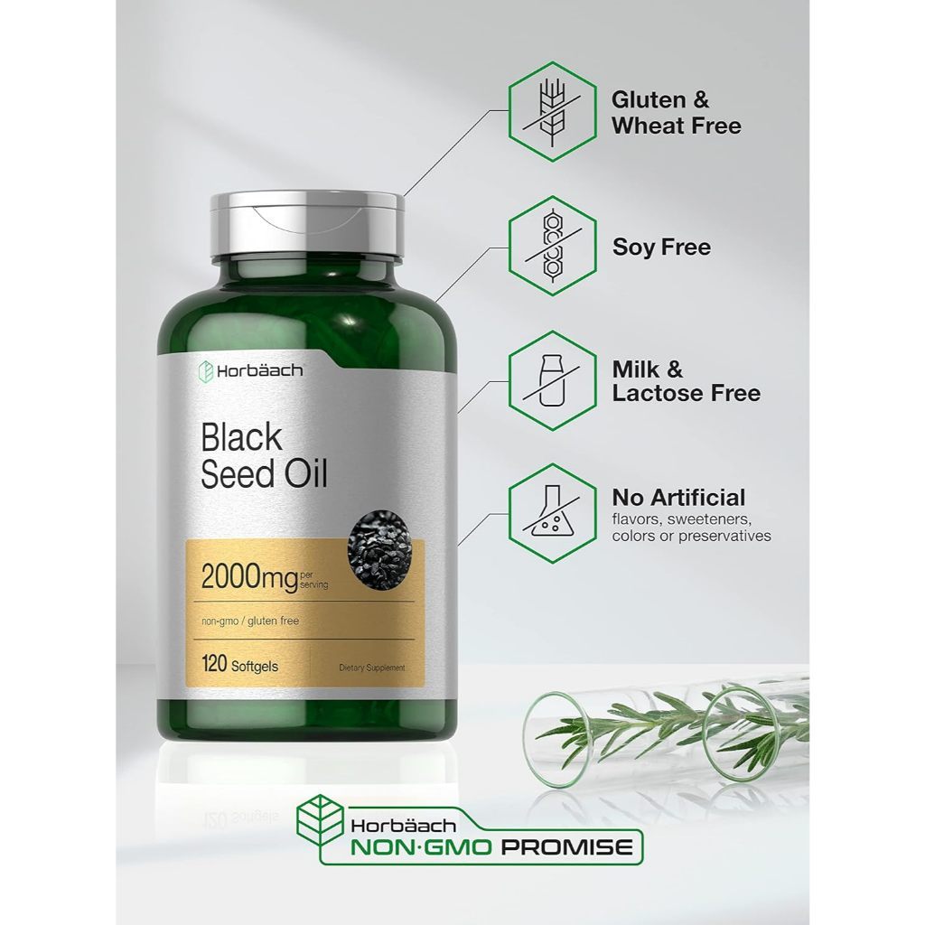 Horbäach Black Seed Oil Softgel Capsules | 2000mg | 120 Count (No.3665)