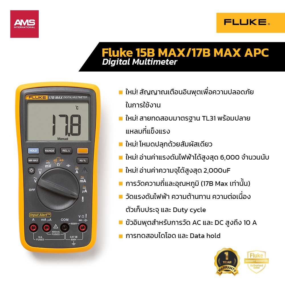 Fluke 15B MAX / 17B MAX APC ดิจิตอลมัลติมิเตอร์