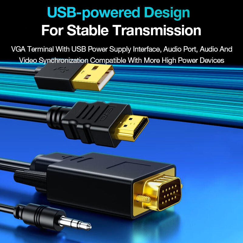 EYD HDTV02 สายเคเบิล VGA ถึง HDMI HD 1080P รองรับสายเคเบิล Plug and Play สำหรับส่งสัญญาณเสียงและวิดีโอ ความยาว 1.8 ม.
