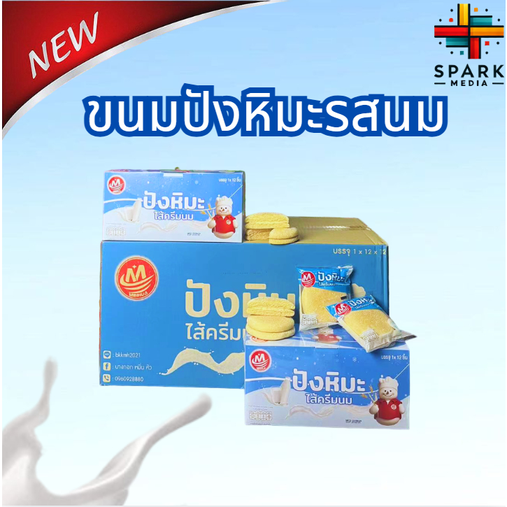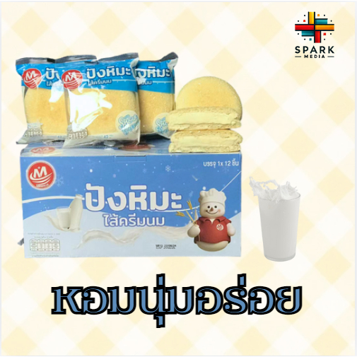 ปังหิมะรสนม Minhua 1กล่อง มี12ชิ้น หอมนุ่ม อร่อย ขนมยอดนิยม (MHปังหิมะนม)