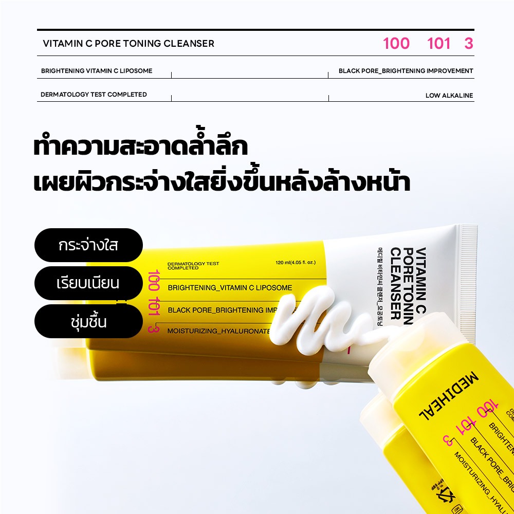 [Official] MEDIHEAL Vitamin C Pore Toning Cleanser (120ml) - โฟมล้างหน้าสูตรไบรท์เทนนิ่ง ทำความสะอาดล้ำลึก อ่อนโยนต่อผิว