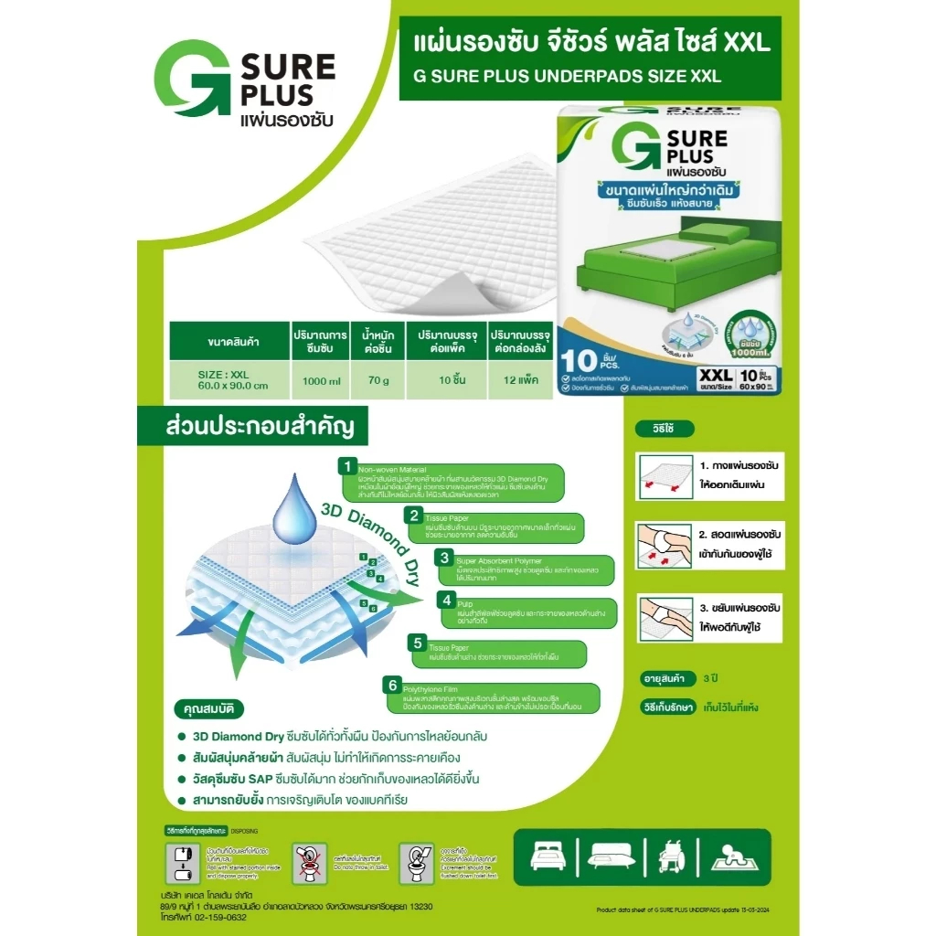 G SURE PLUS แผ่นรองซับ สำหรับผู้ใหญ่ (สินค้าตามตัวเลือก)