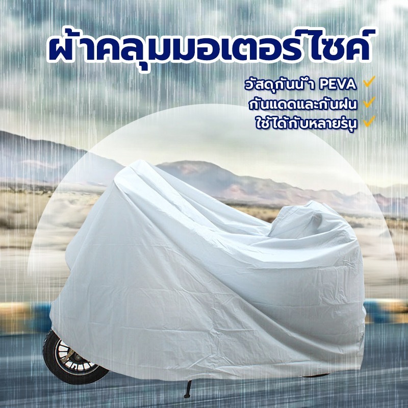 ผ้าคลุมรถมอไซ ผ้าคลุมมอเตอร์ไซค์ ผ้าคลุมรถจักรยาน กันฝน กันแดด มีให้เลือก 3 ขนาด วัสดุกันน้ำ PEVA ปกป้องรถมอเตอร์ไซค์ขอ