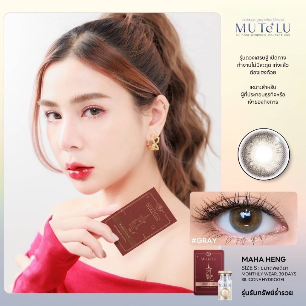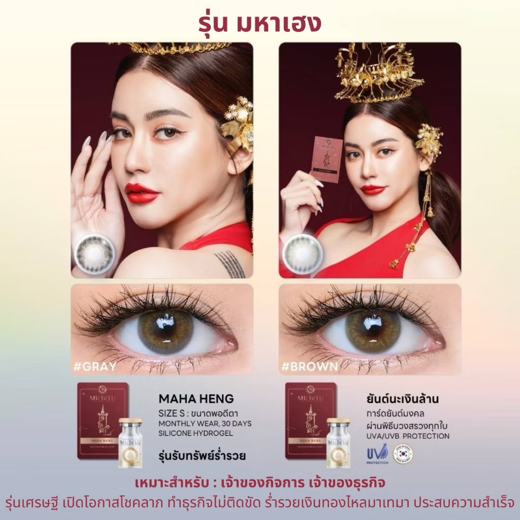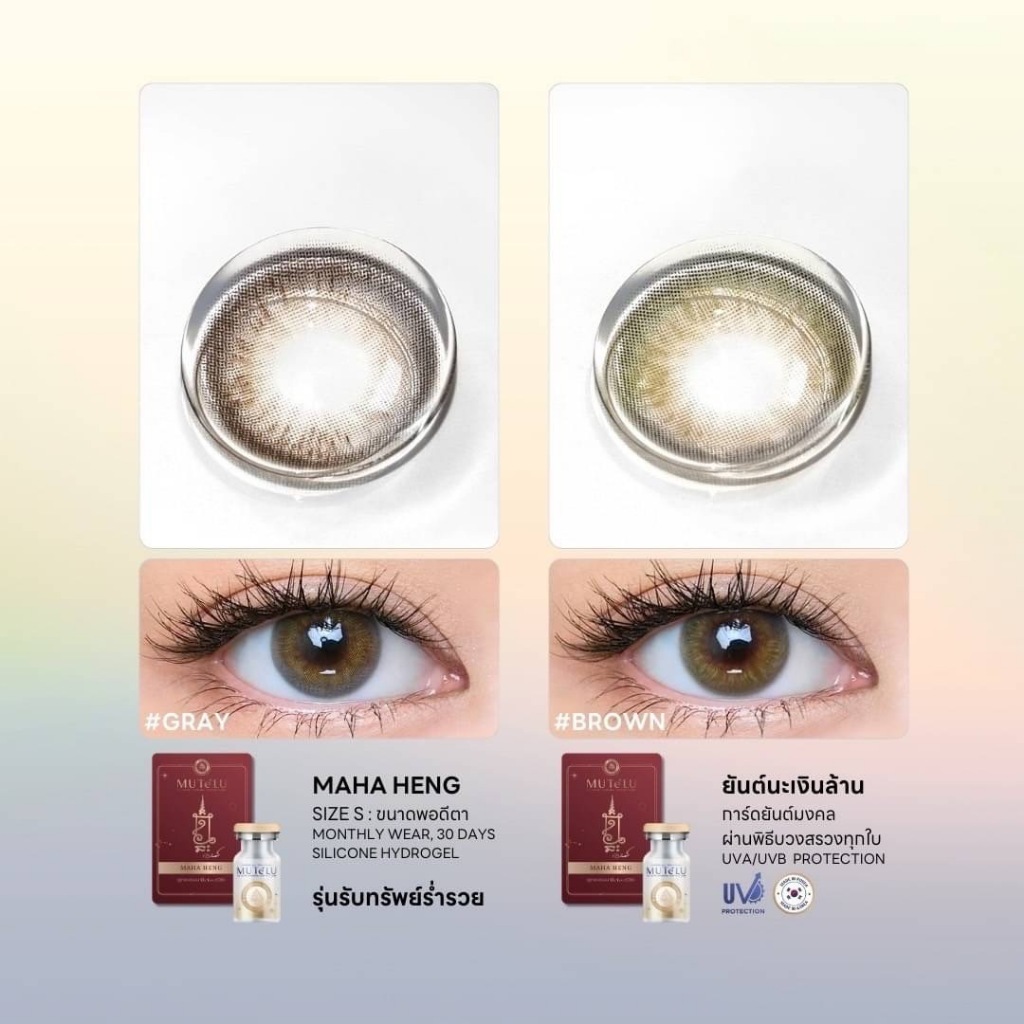 คอนแทคเลนส์มูเตลู มีค่าสายตา Hydrogel [ตาไม่แห้งเจ็บ] กันUVA/UVB ขนาดมินิ Mutelu มหาเฮง นะหน้าทอง คอนแทคเลนส์สีน้ำตาล