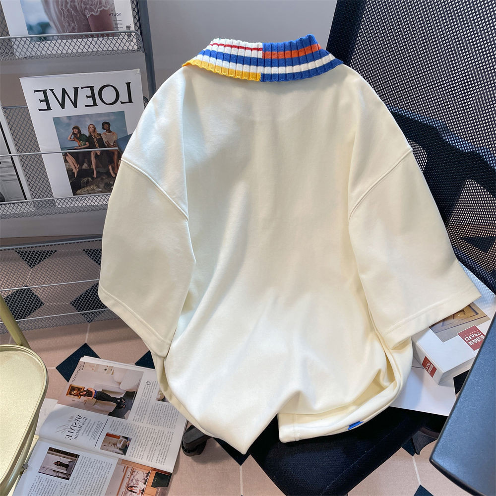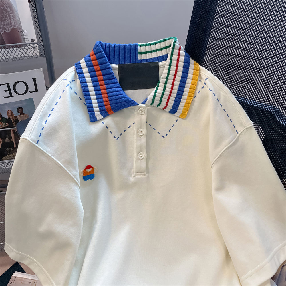 TLHGQ เสื้อโปโลแขนสั้นฤดูร้อนผู้ชายสไตล์ฮ่องกง อิน สไตล์ถักหลวมด้านบน