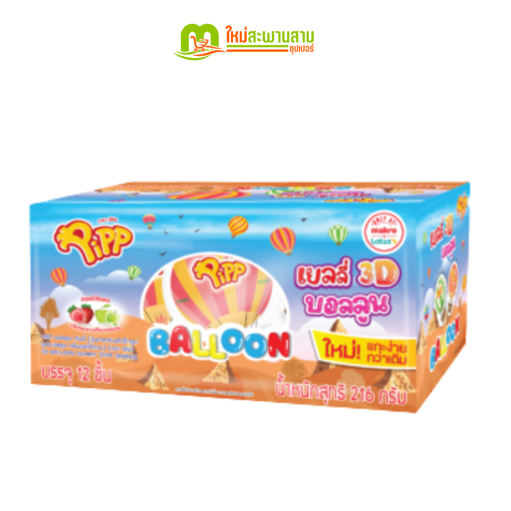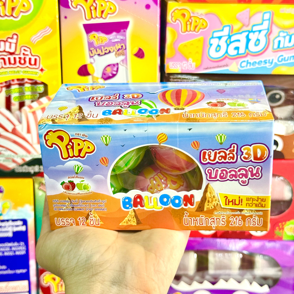 [แพ็คx1] พิพ Pipp เยลลี่ 3D บอลลูน วุ้นเจลาตินสำเร็จรูป รูปบอลลูน กลิ่นผลไม้รวม 216 กรัม (12 ชิ้น)