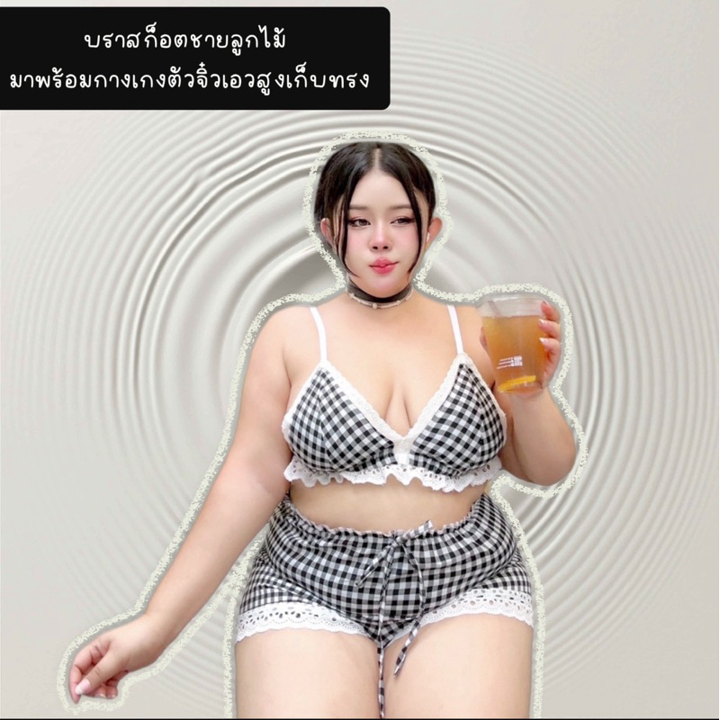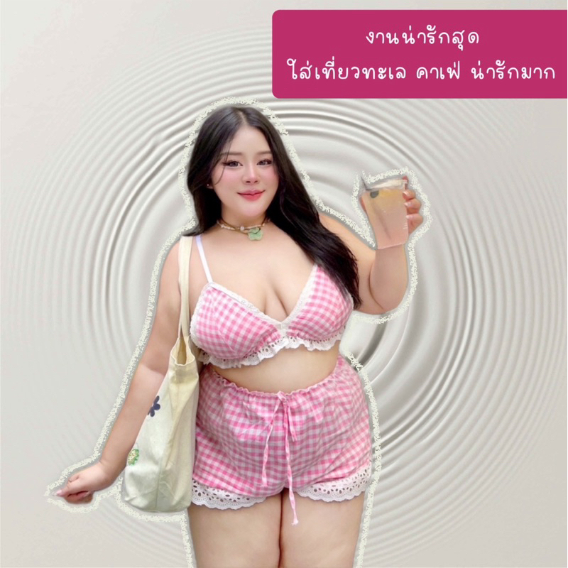 ชุดเซ็ตสาวอวบ บราเข้าเซ็ต ลายสก๊อต ❤️Plussize❤️ งาน2ชิ้น น่ารักสุดๆ ซัมเมอร์นี้ต้องมีแล้ว