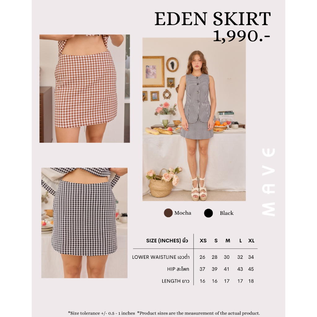 Mave กระโปรง รุ่น Eden skirt สี Mocha gingham,Black gingham