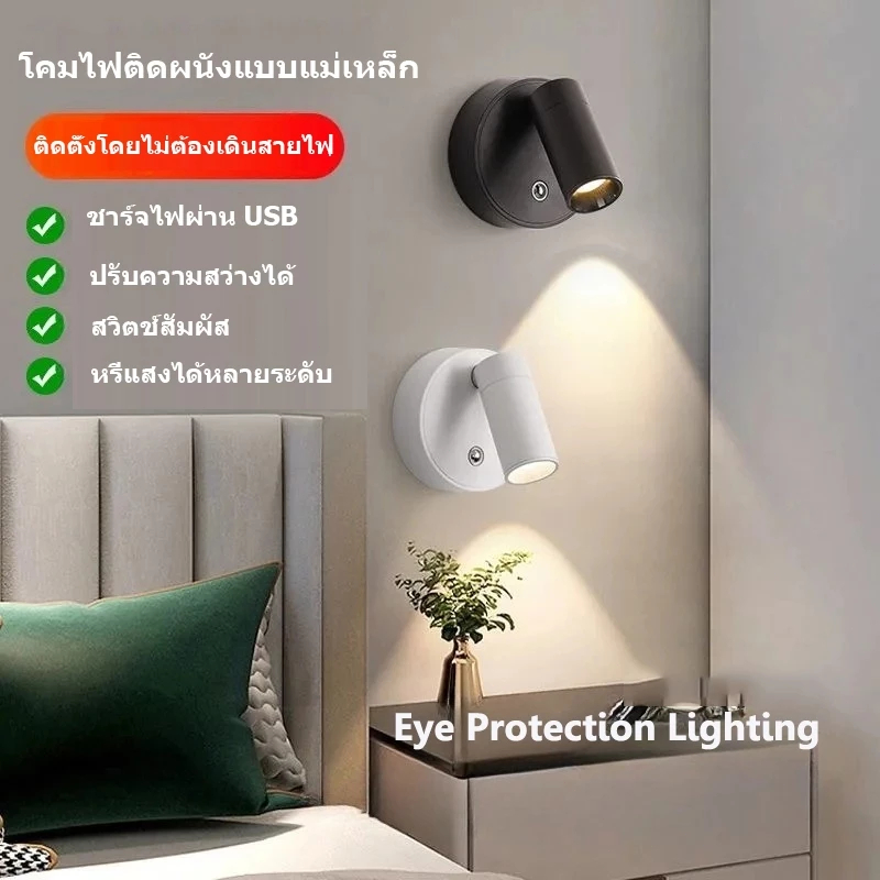Ofeel 8000mAh โคมไฟติดผนัง LED USBแบบชาร์จไฟได้ ไฟกลางคืน ไฟอ่านหนังสือ ไฟสัมผัสแบบแม่เหล็กไร้สาย
