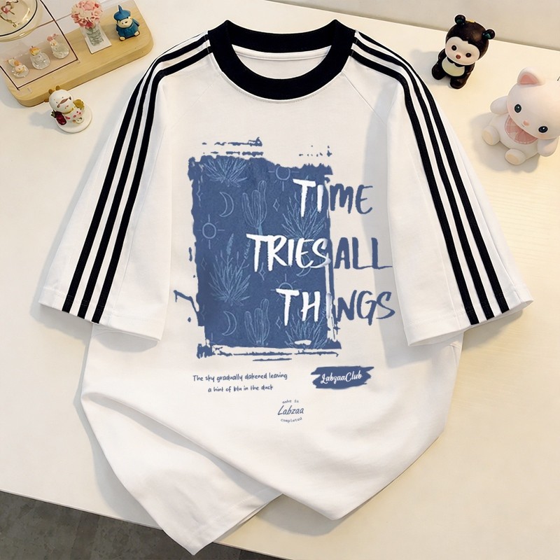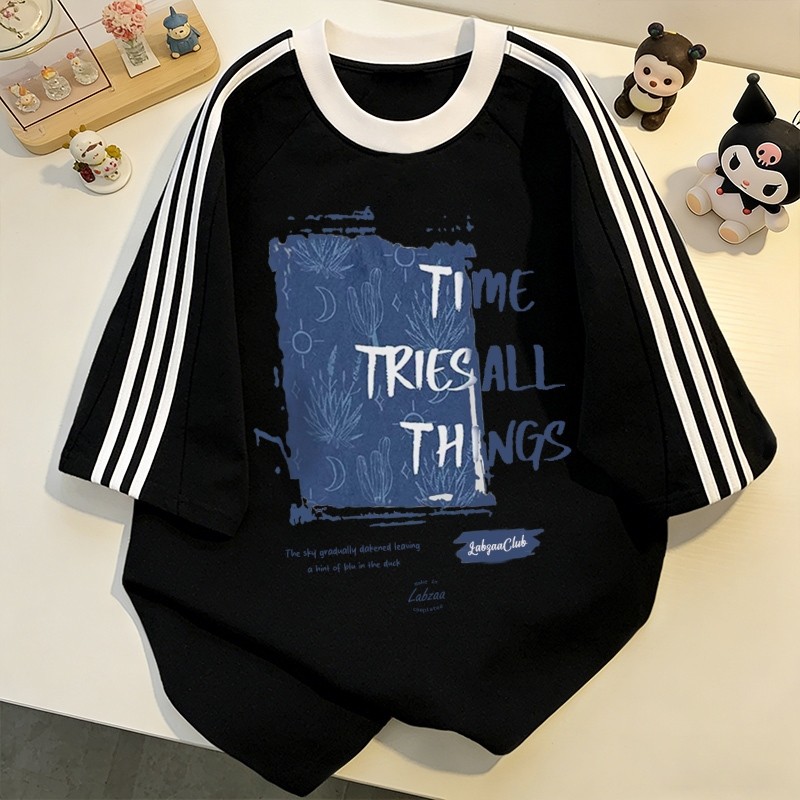 【จัดส่งตลอด 24 ชั่วโมง】NFV สไตล์เกาหลี เสื้อยืด ลวดลายแฟชั่น Oversized สะดวกสบาย ระบายอากาศ ผ้าฝ้าย YG563
