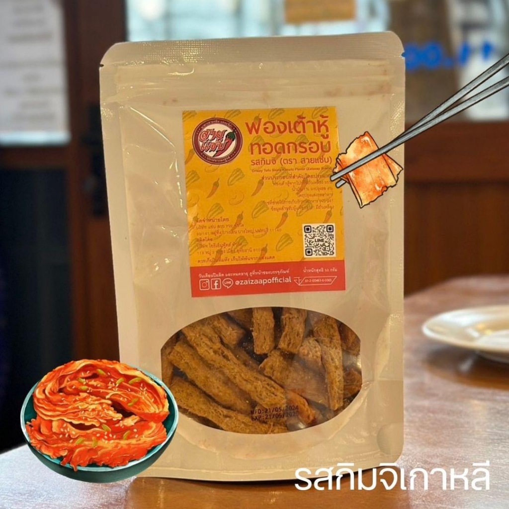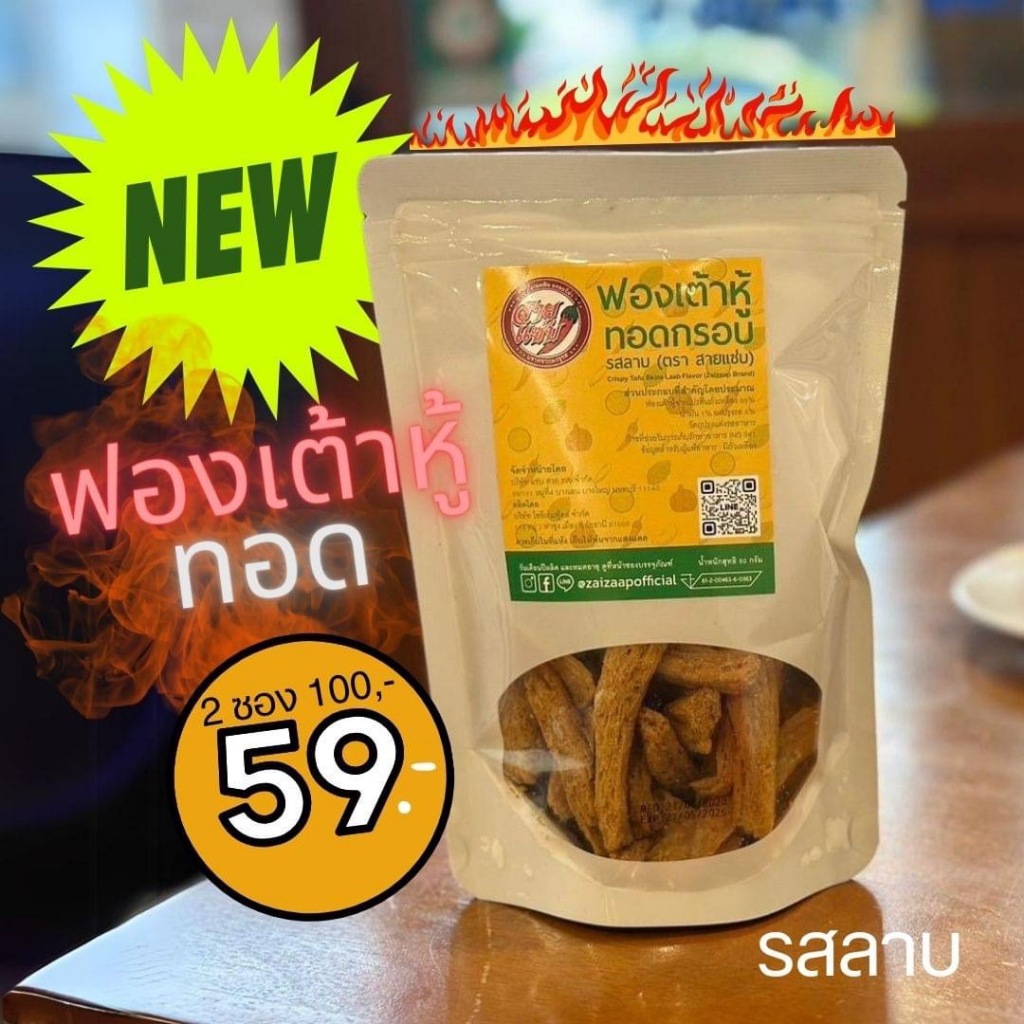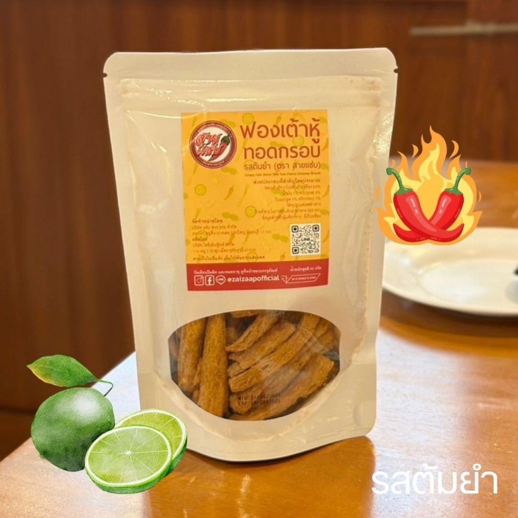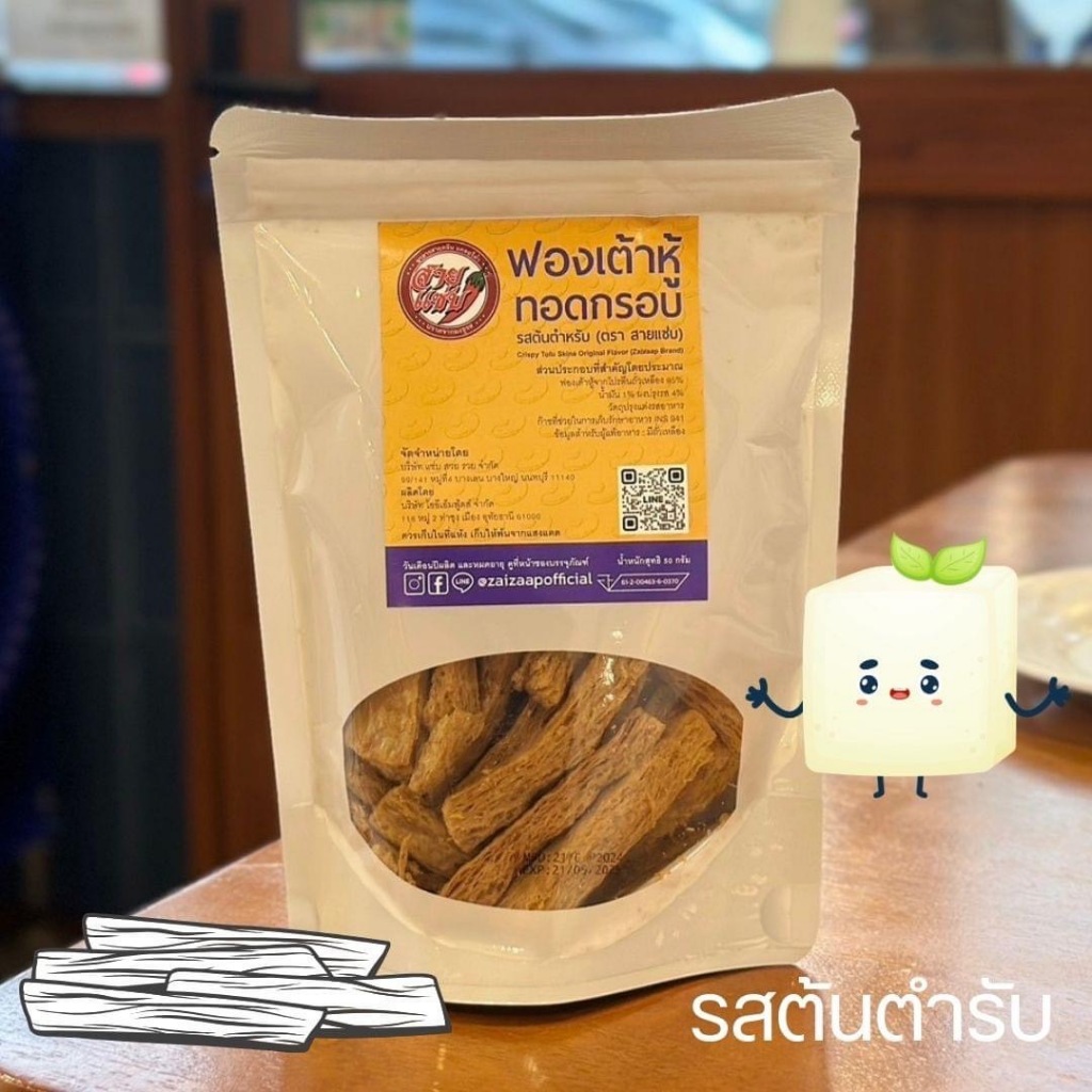 ฟองเต้าหู้ทอดกรอบ ตราสายแซ่บ กรอบ อร่อย โปรตีนสูง ไขมันต่ำ มังสวิรัติ เจทานได้ ขนาด 50 กรัม