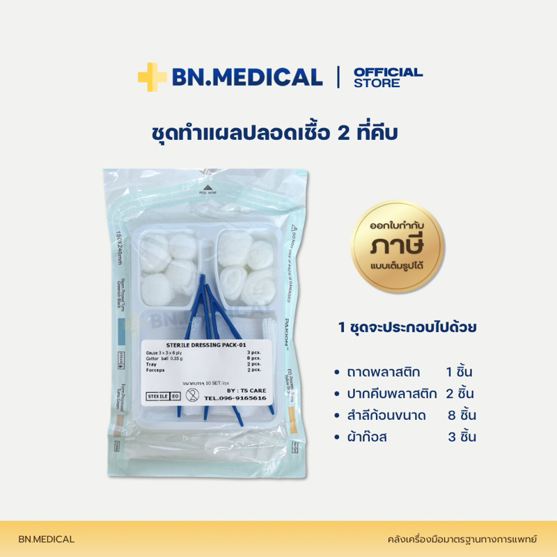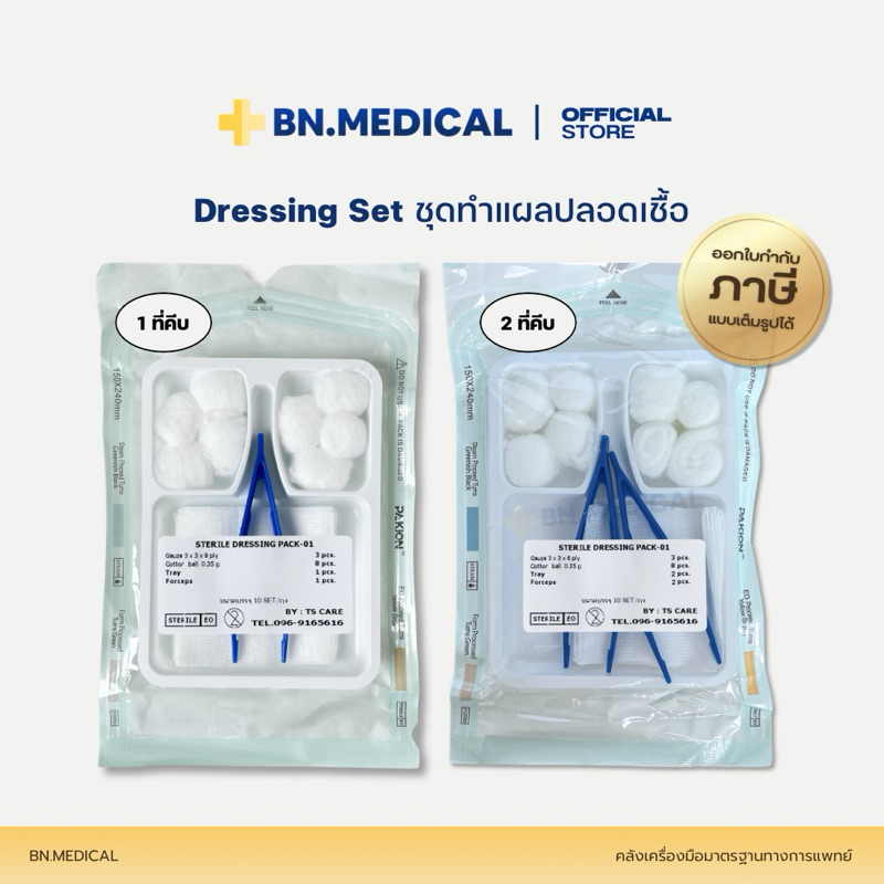 ชุดทำแผล 1 ที่คีบ 2 ที่คีบ (ยกแพ็ค 10 ชุด) dressing set อุปกรณ์ปฐมพยาบาล