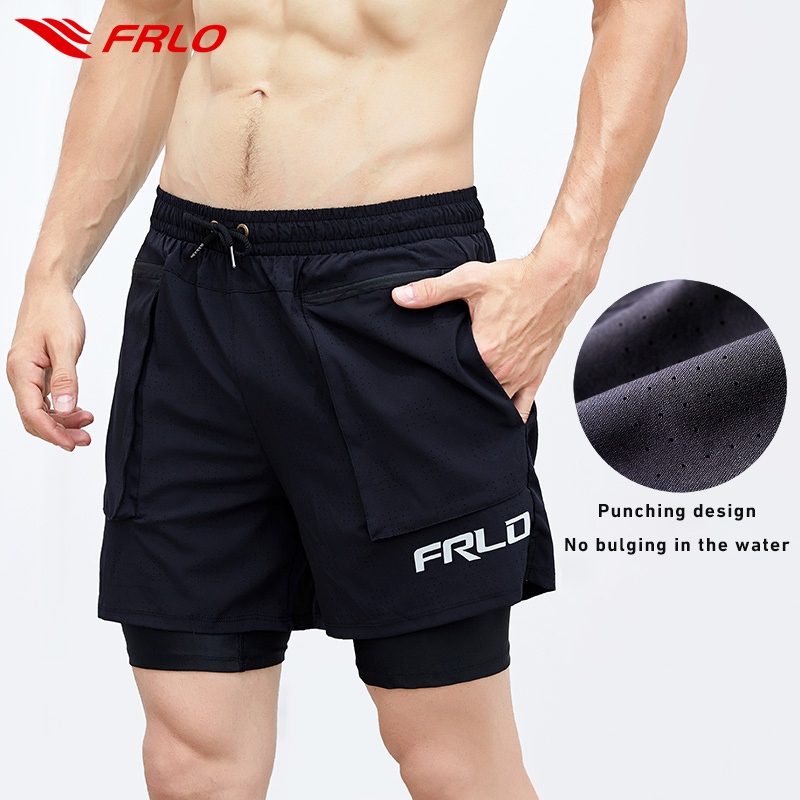 FRLO กางเกงกีฬาผู้ชาย กางเกงวิ่ง มีซับเลคกิ้ง มีกระเป๋าซิปทั้งสองด้าน แห้งเร็วที่มี รุ่นQ21004