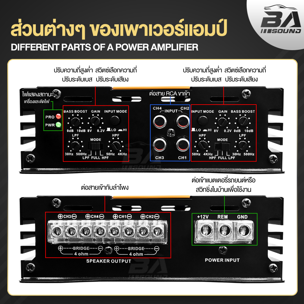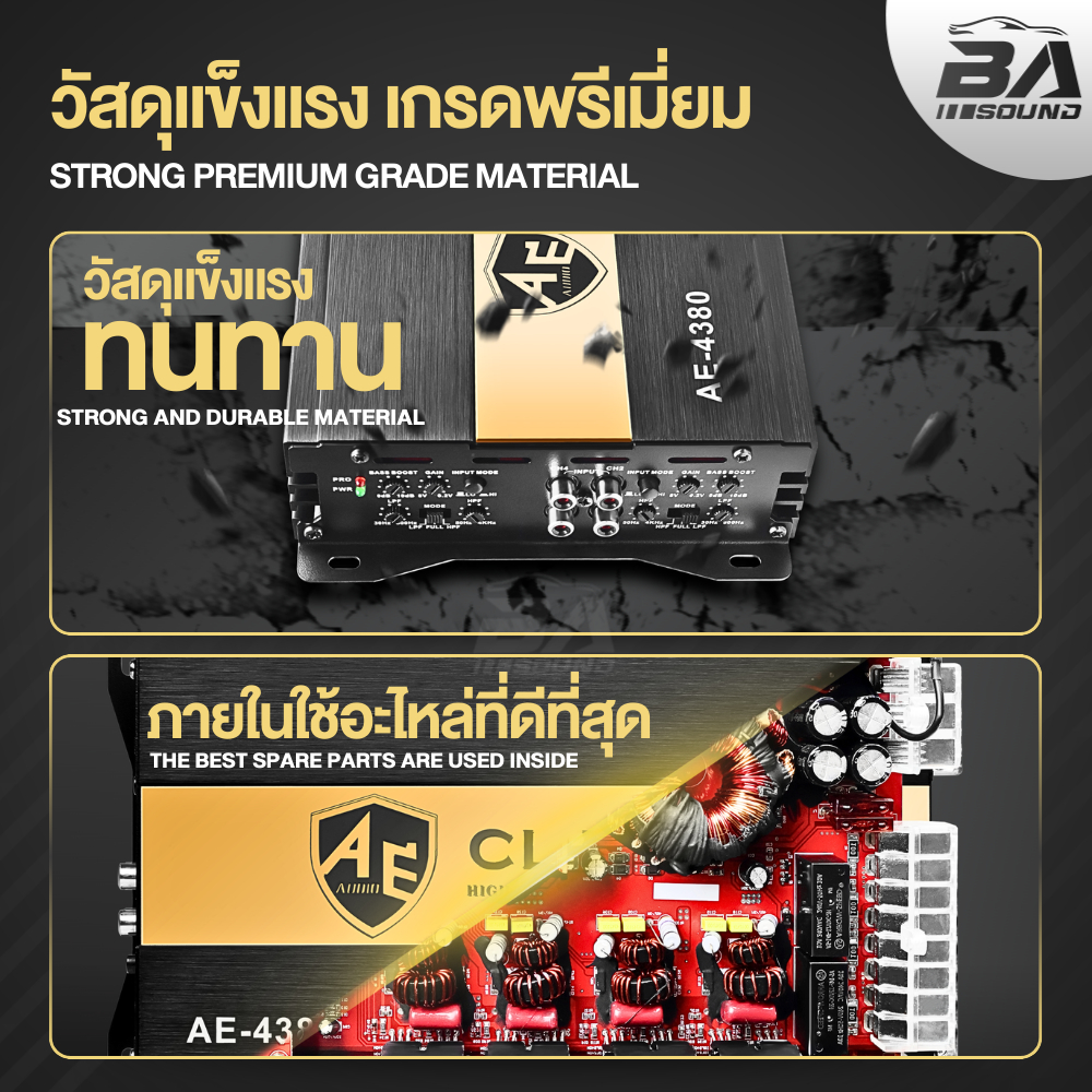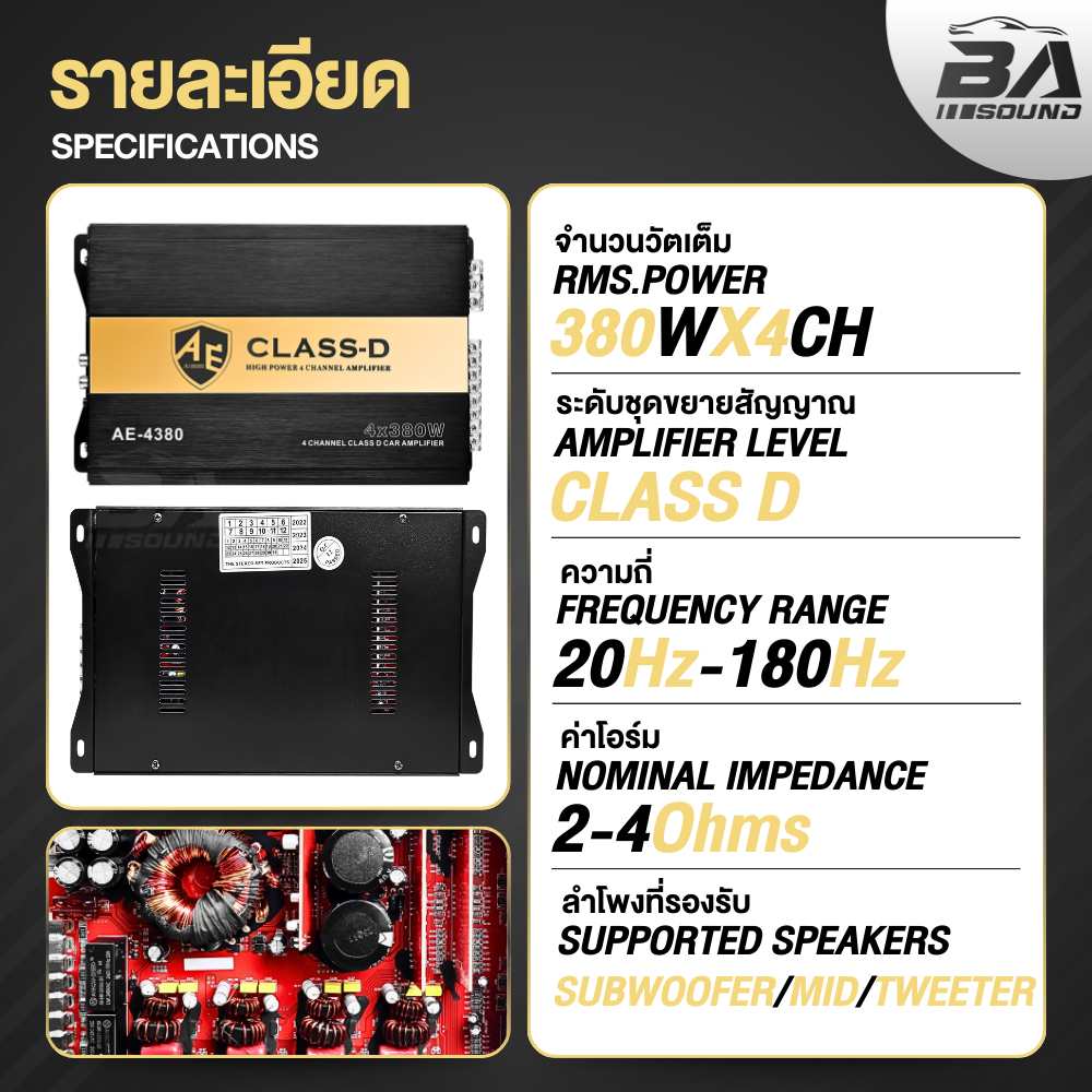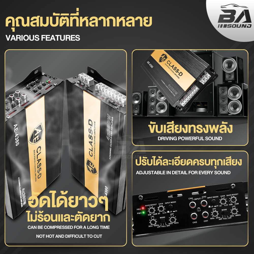 BA SOUND เพาเวอร์แอมป์ CLASS D 4CH. 4x380W AE-4380 เพาเวอร์คลาสดี4ชาแนล แอมป์ขยายเสียง แอมป์ขับซับ เพาเวอร์แอมป์รถยนต์