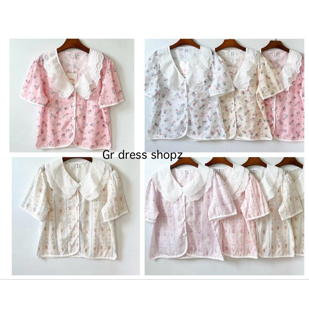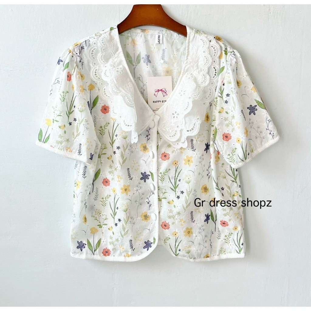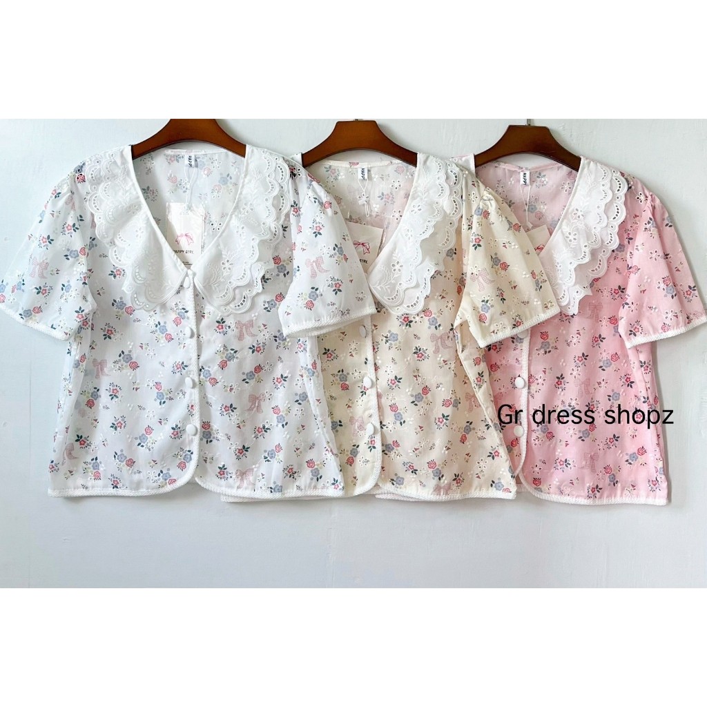 เสื้อผ้าคอตตอนปักฉลุลายทั้งตัว แต่งปกลูกไม้ อก 42 นิ้ว ยาว 22 นิ้ว