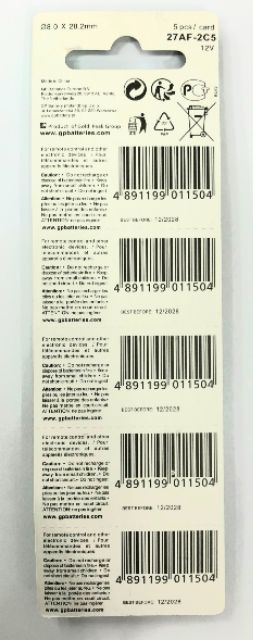 ถ่านรีโมท Gp 27A 12V จำนวน 5 ก้อน